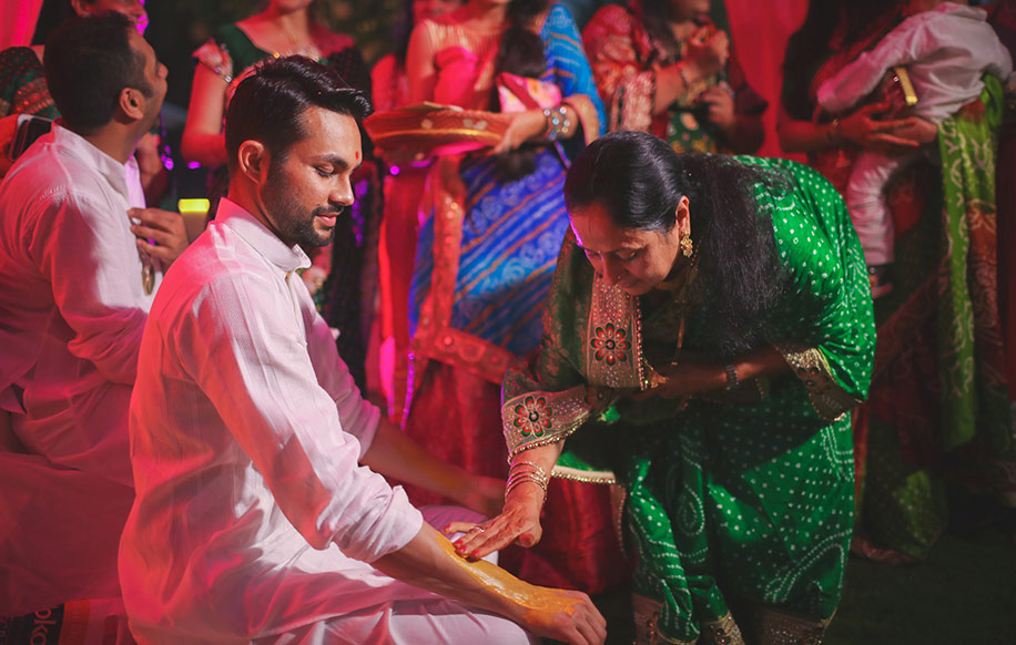 “The wedding ceremonies started with Haldi function at the hotel’s lawns where our friends and family covered us with haldi to ‘cleanse us’ prior to our religious ceremony. It was filled with laughter and it was certainly a fun celebration as our friends were equally involved and enjoyed the evening. The decor theme was an explosion of colours such as bright pink and yellow as I wanted bright shades to stand out in contrast to the beautiful lush green lawns.”