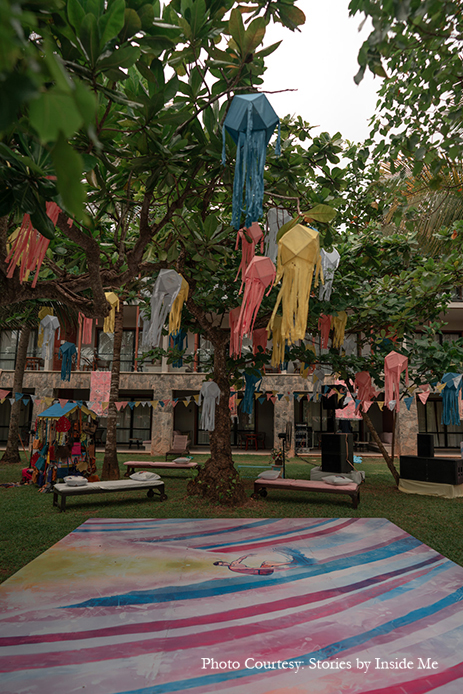 Inspired by the local, vivid Sri Lankan culture, the flea market was a fun event where the guests witnessed the beauty of Sri Lankan art forms first-hand. Brass elephants, bright-hued traditional masks, folk dancers and pastel lanterns transformed the outdoor venue into a mini flea market. A special stall offering traditional wood-carved statues and masks doubled up as a souvenir for the guests.