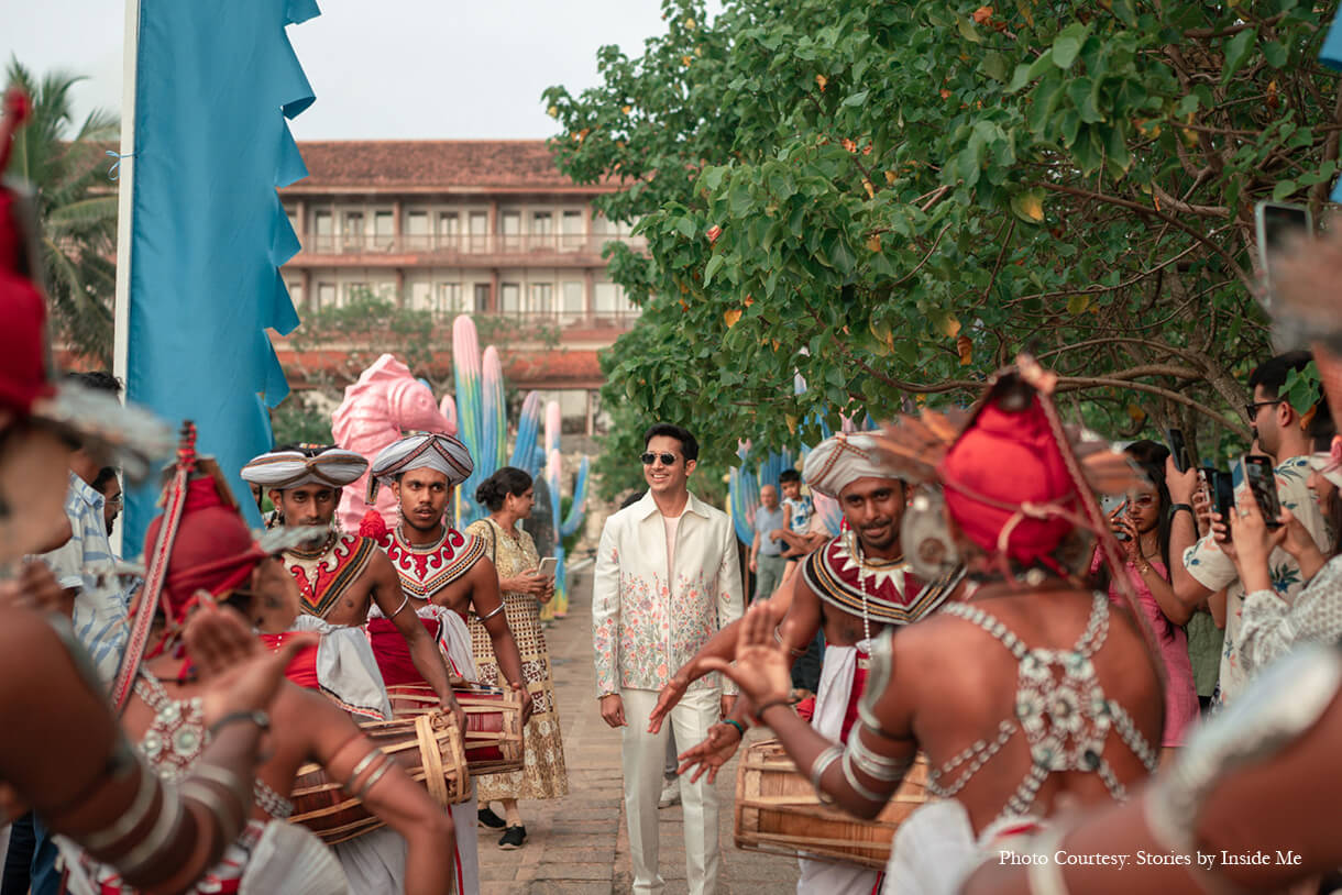 Planning a destination wedding on an exotic island is an intricate task for which the couple looped in Events and Wedding Experiences who thoroughly impressed the couple with their creativity, proactive nature and ability to understand their vision. Nikhil Jetha from Events & Wedding Experiences shares, “The couple was keen on making every member of the family feel appreciated and hence, wanted events that revolved around their family. They also admired the local Sri Lankan culture, which was also incorporated into one of their pre-wedding festivities. For their wedding mandap, both the families wanted the mandap to match the bride’s Phoolon Ki Chaadar for which we crafted a highly customized design from scratch.”