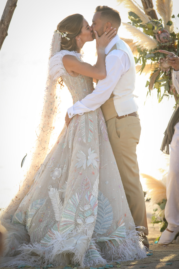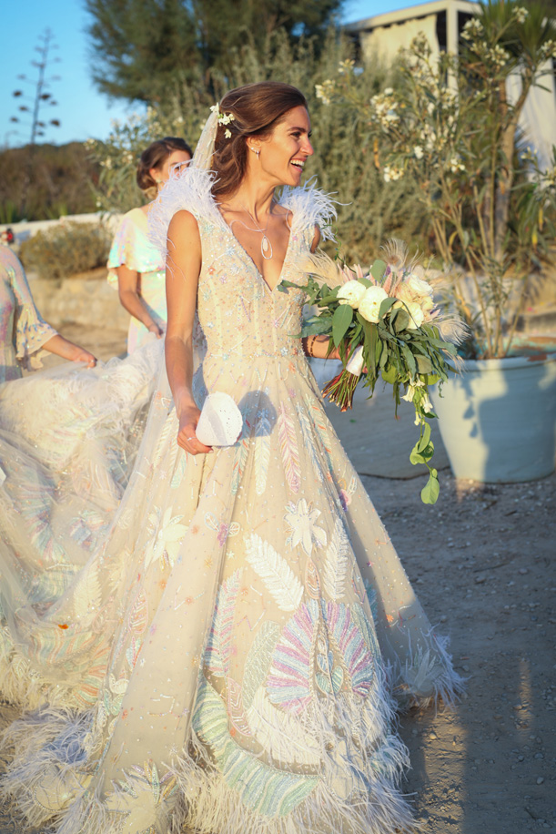 “We decided to get married in Ibiza because we felt connected to the place as individuals and the island’s energy also represented us as a couple very well. The celebrations were scheduled for June so the weather was wonderful. Ibiza is also close to the Mediterranean, where most of our family members stay. It also has direct connectivity to many international hubs and so it was easy to access all year round. The wedding ceremony was hosted at Experimental Beach, Cap d’es Falco, and the reception took place at Can Nefra, Puig d’en Valls.”