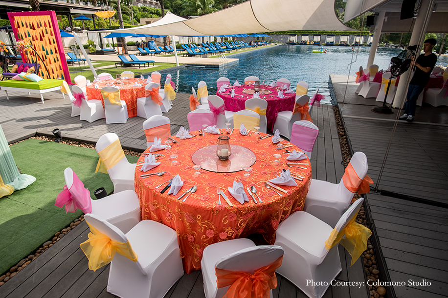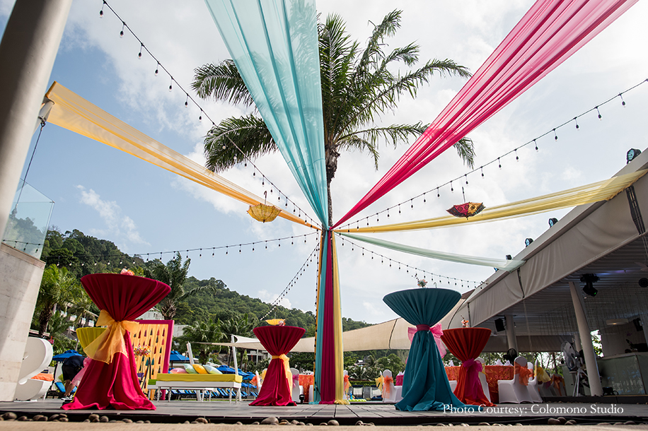 “We love to travel and we love the beach so Phuket was the perfect destination. It’s close to Singapore and has amazing beaches with beautiful turquoise waters. We fell in love with the Hyatt Regency Phuket Resort, almost as soon as we saw it. Its beautiful lawn that overlooked the waters helped us imagine how amazing the mandap would look there. We were planning an intimate wedding and the resort seemed perfect for our guest list. The team at the resort was also kind and accommodating throughout!”