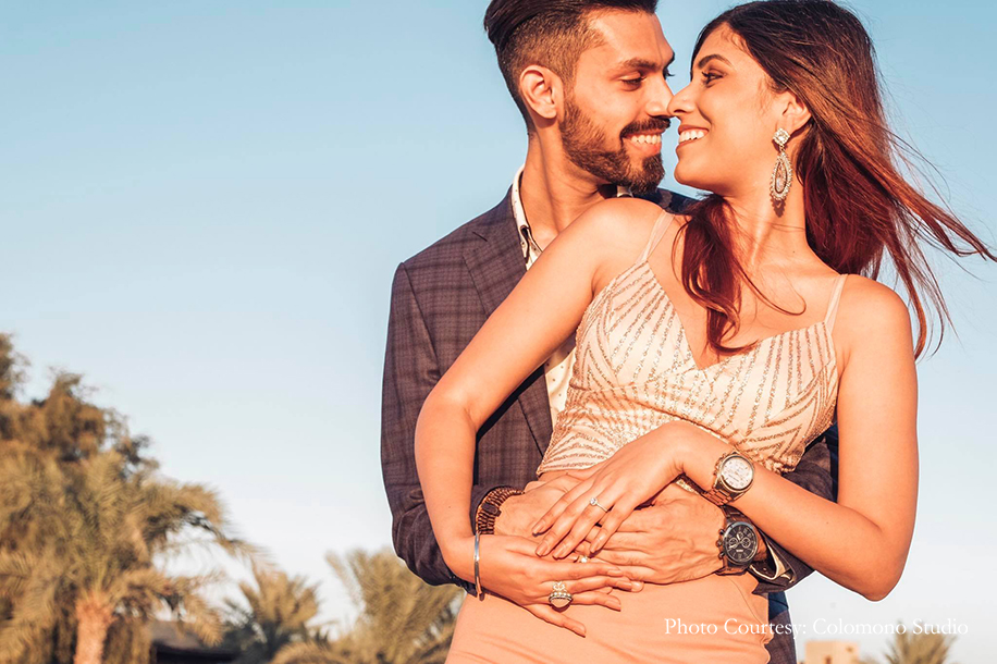 “We’d planned a trip to Dubai in the winter to visit my sister and attend a wedding. When we landed he told me he’d booked us into a hotel for two nights. Two hours later we pulled up to the Bab Al Shams Desert Resort & Spa. The property is gorgeous, in the middle of the desert and Satvik took me to the rooftop bar. Then he showed me a secret Instagram account. It was filled with pictures and videos of all our milestones, our memories. The posts had been uploaded on the same days these moments happened. When he showed me a clip that had him saying, “Will you marry me?” from a year ago I realised he’d been thinking and planning this proposal for such a long time!