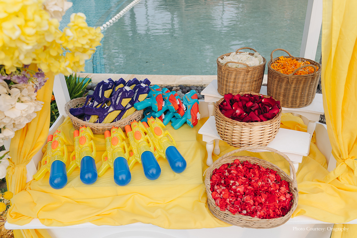 “Our Haldi was a joyful ode to the vibrant energy of Govinda—a true celebration of dance, color, and unfiltered fun,” shares Jamini with a laugh. “We drew inspiration from his iconic charm and effortless moves, creating a high-spirited, freestyle dance affair with everyone on their feet. From retro Bollywood beats to riotous splashes of yellow, the entire celebration was brimming with nostalgic fun and infectious laughter.