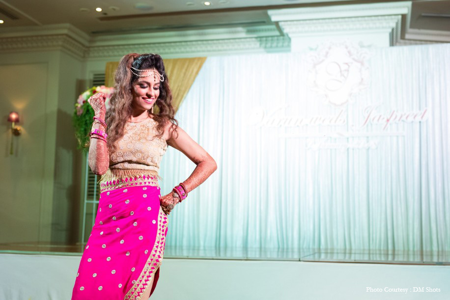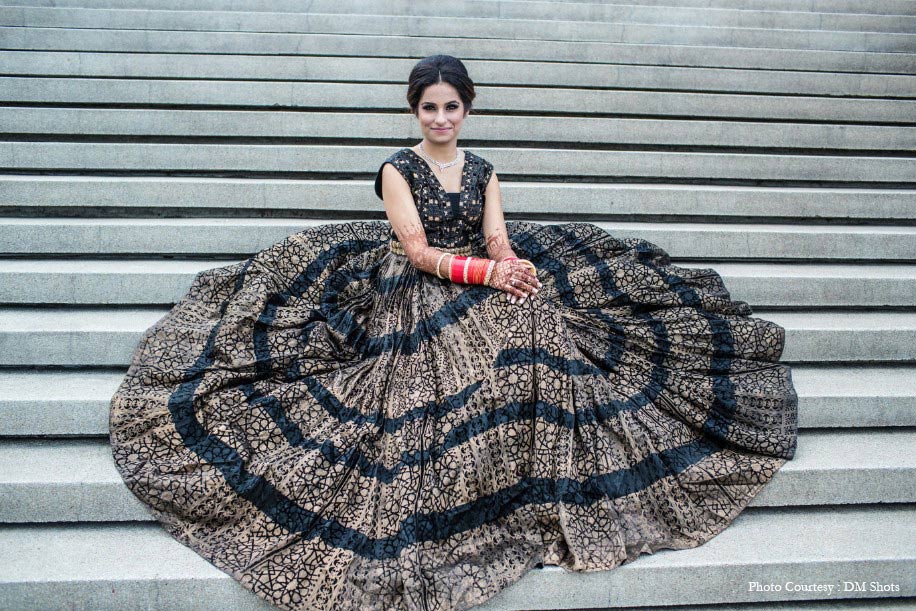 Bride’s Outfits: Shyam Narayan Prasad (Sangeet), Frontier Raas (Wedding), Shantanu & Nikhil (Reception)