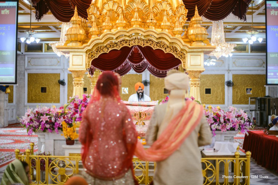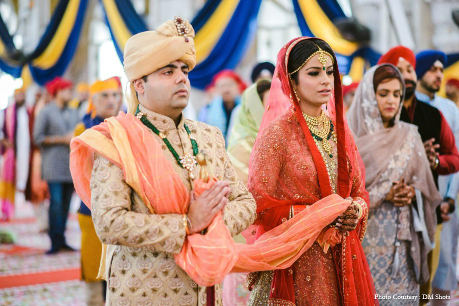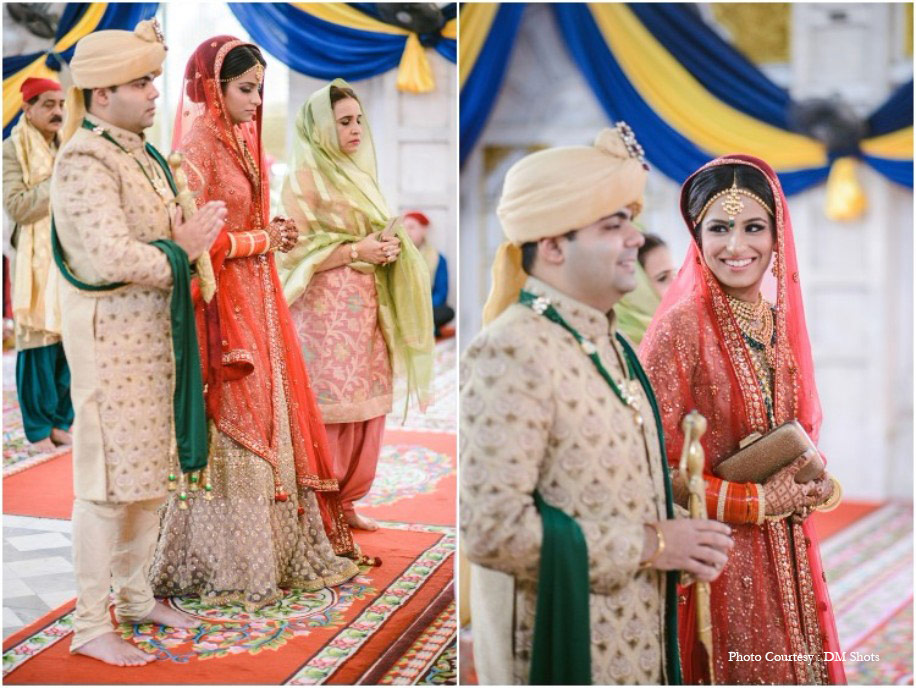 “The following day we exchanged our vows at the gurudwara. Since the place was so beautiful by itself, there was hardly any need to decorate it any further. All we did was add a few blue and golden drapes for a festive touch. For this ceremony, Jazz wore a golden outfit from Frontier Raas in New Delhi, and I wore a Golden Sherwani.”