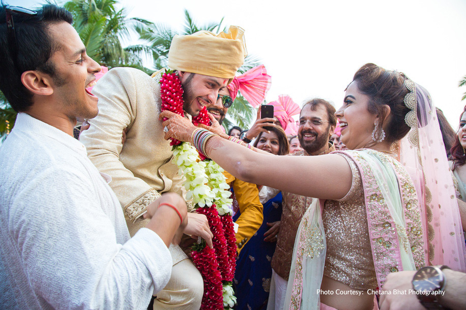 The #JoKar wedding was a canvas of bright colors, cheery bonhomie, and stunning views. Chetana Bhat Photography freezes in frames the timeless moments of the duo’s nuptials in Goa. Here are some highlights of the wedding celebrations.