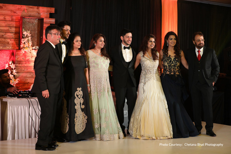 The reception theme was rustic and charming. A paneled wood wall with flowers in full bloom proved the be the perfect eye-catching backdrop for this elegant function. Inspired by a traditional white wedding, Karan wore a classic black tuxedo while Jyoti donned a white and golden gown. The duo even opted for a tiered wedding cake where some layers were made entirely of cupcakes.