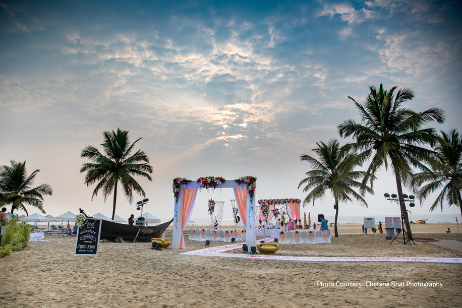 Jyoti and Karan had always dreamed of a destination wedding, so they found Goa to be the ideal choice of a wedding location. They hosted their friends and family at the Holiday Inn Resort Goa, a place they had fallen in love with from the time they had first seen it. The food and ambiance were just perfect, and they loved the location for the pheras – the beautiful beach.