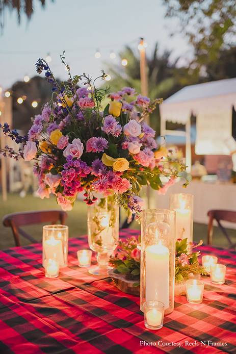 A stylish setup that fused traditional and modern elements, the Welcome Dinner ensured the guests mingled freely before the festivities commenced. Old-school regal glamour was enhanced by bright hues as the table sported colorful tableware and dainty blooms.