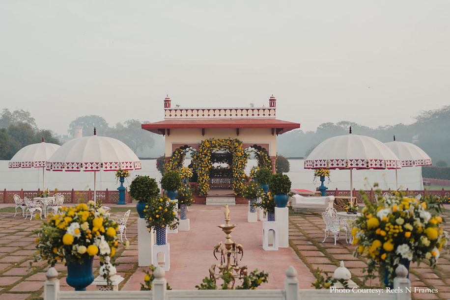 Venues: Jaipur Marriott Hotel (Groom’s Haldi); Jai Mahal Palace, Jaipur (Bride’s Haldi, Welcome Polo Match and Sundowner, Wedding, Sangeet)
