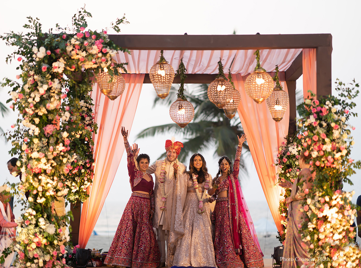 This couple’s wedding flaunted a soft pink-hued wedding mandap that looked right at home at the beachside venue!