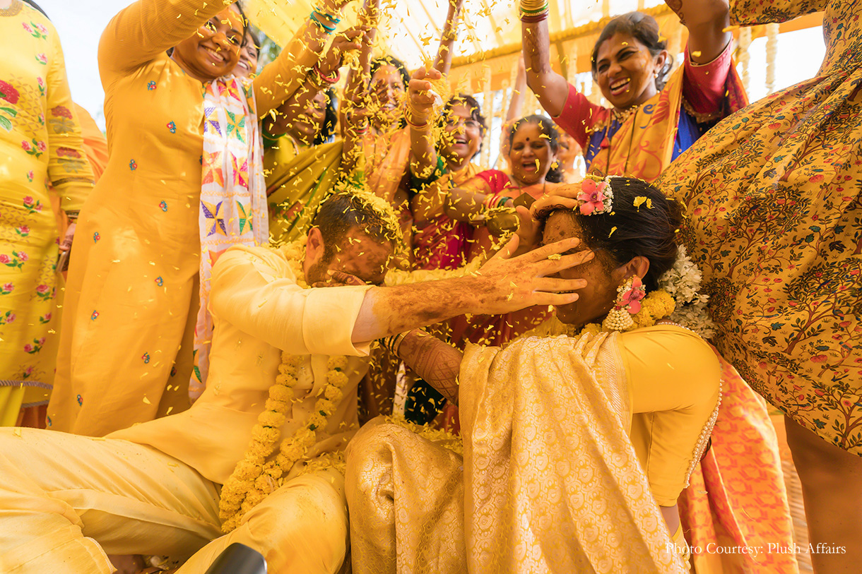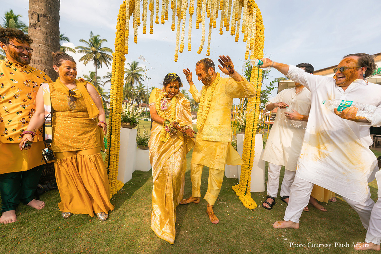 Like any other Maharashtrian haldi, Kamakshi and Adam followed the tradition in a very particular way, and later were splashed with water.”