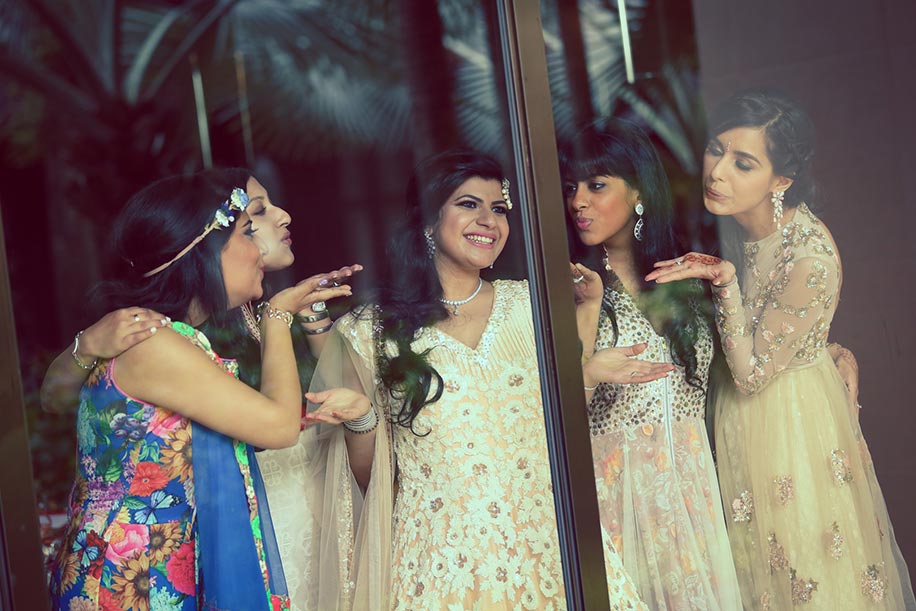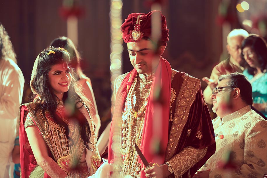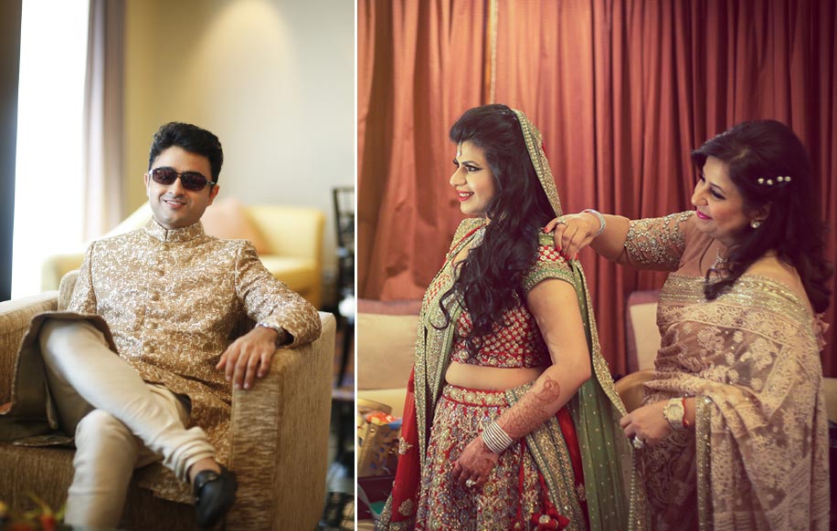 Groom’s Trousseau: Manzar Couture (welcome dinner & mehndi), Manav Gangwani (sangeet), Sabyasachi Mukherjee (wedding) and House of Launganis (reception)