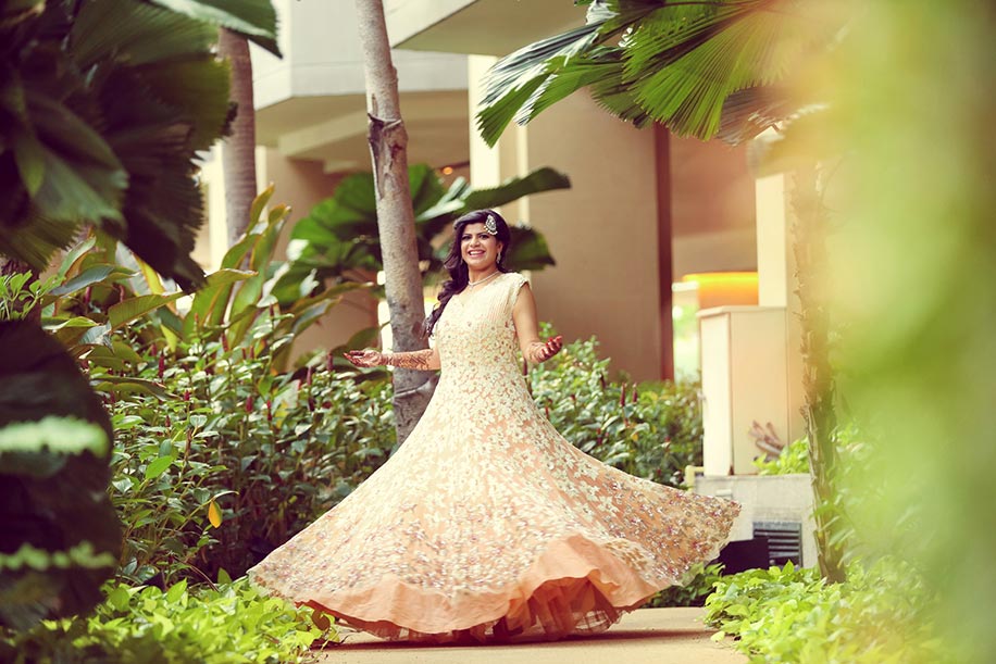 Kamali twirled pretty in a salmon pink floral gown by Manish Malhotra
