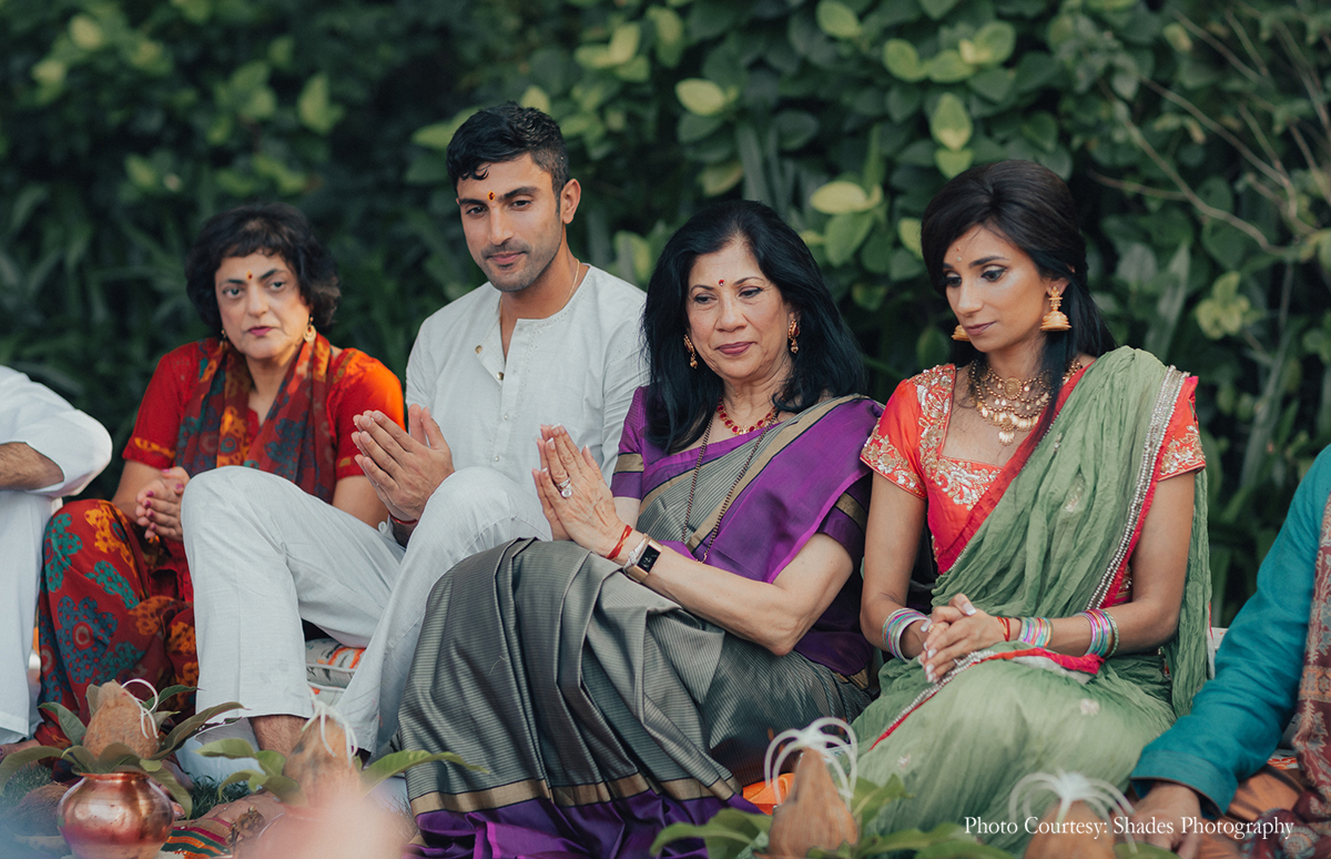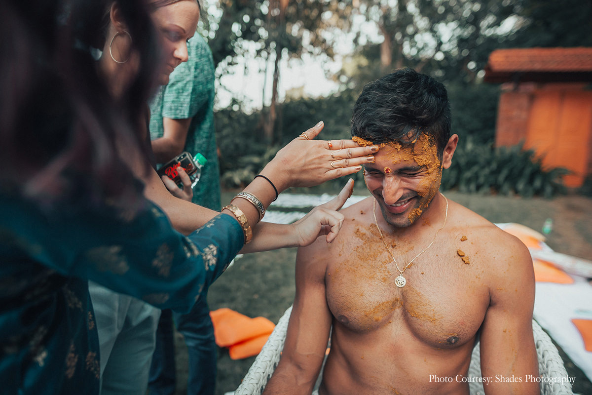 “It was important to us that we combined our traditions and included what was important to both our families. There are so many beautiful rituals and ceremonies from both the North and South of India, and I love how this day represented a union of our traditions and cultures. It was a small and intimate ceremony right on the front lawn of our villa at Taj Fort Aguada. I told Neel he couldn’t get haldi in my hair but a Haldi battle ensued nevertheless, and I won!”