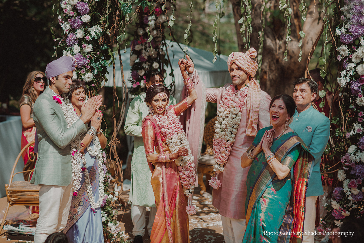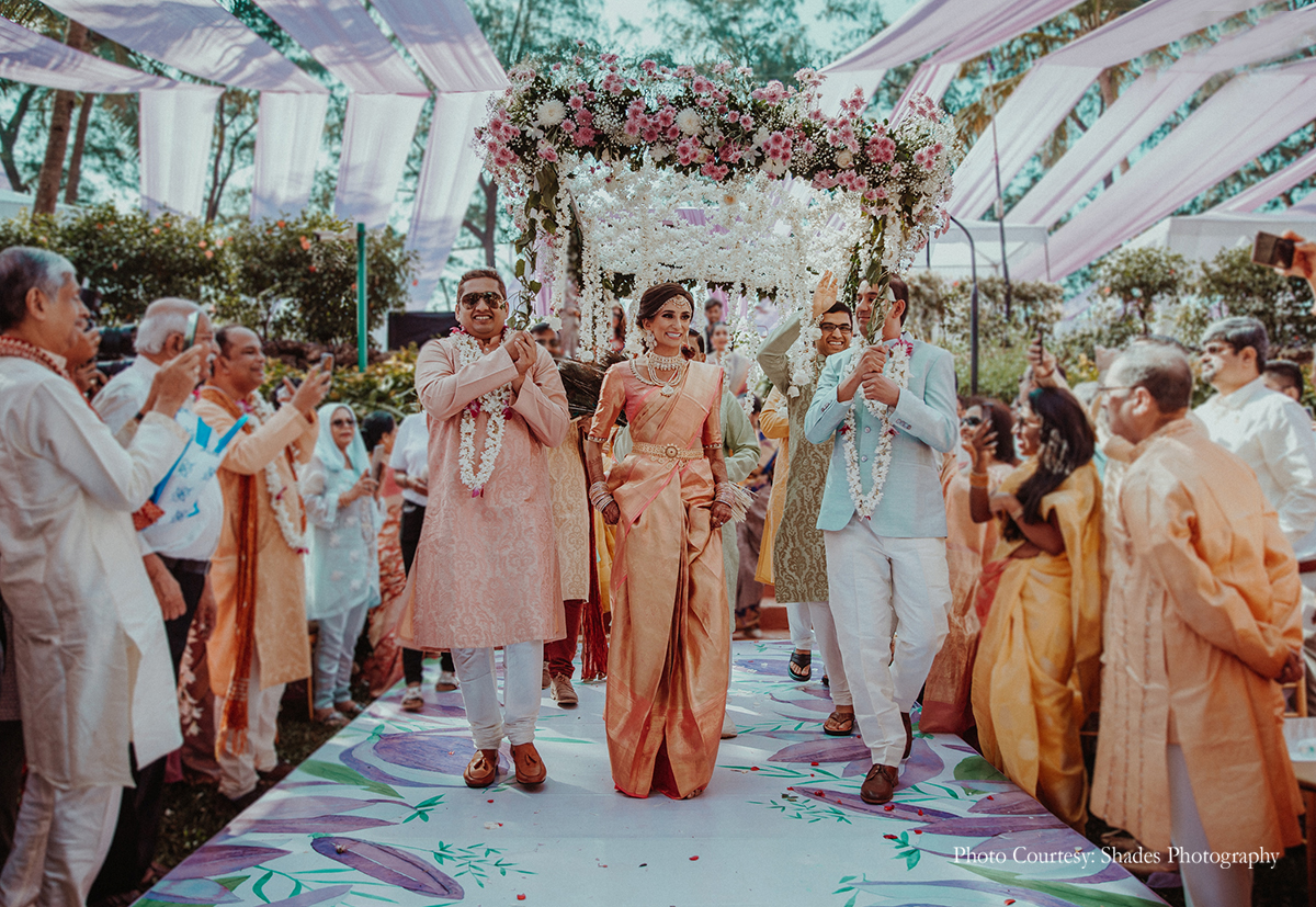 They say ‘True love stories never have endings’. Kavita got her fairytale wedding with her prince charming with an ‘enchanted forest ’-themed ceremony. The morning started with an epic 90s hip-hop baraat with an inflatable giraffe with friends and family from both sides. Inspired by Neel’s love of the color purple, the ceremony was designed in shades of purple hues. The couple tied the knot amidst great cheers in a story-book mandap which rested under a massive peepal tree on the cliffs overlooking the ocean.