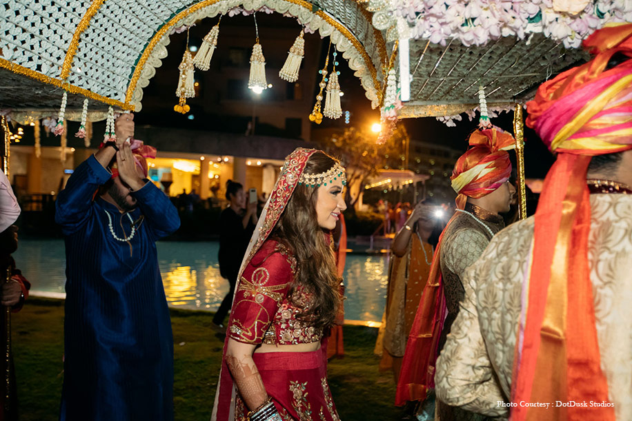 “Seema and Suman from Magnificence Events made sure that everything was smooth and gave us a lot of time so that things could be planned our way. Their team executed our events and ensured that all our guests were treated well. Photographs of your wedding day are what lasts you a lifetime, and we had DotDusk Studios take care of our photography, and they captured stunning candid moments. We also had Pooja Studio from Dubai working alongside them.”