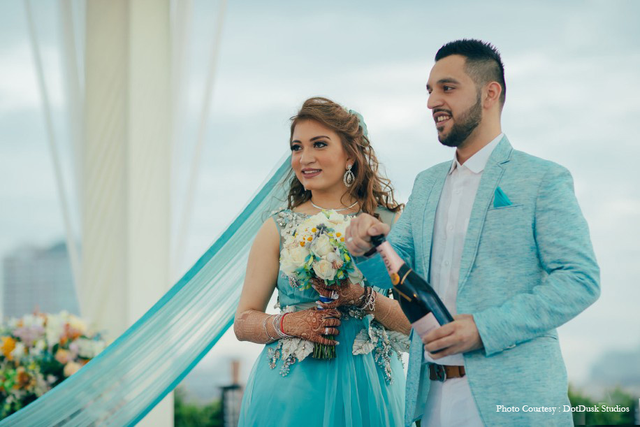 “Rahul had planned two proposals. The first was at Guru Darbar in Jebel Ali, a place that we call heaven in Dubai and try to go to at least once a week. The second was when he chartered a seaplane and took me around Dubai for around 30 minutes making me fall in love with the city and him all over again. Dubai is where we were born and raised. It was such a great feeling to see our city from that perspective. Upon landing, he had his groomsmen, and my bridesmaids hold individual letter balloons that spelt, ‘Will you marry me? This entire day was a big surprise.”