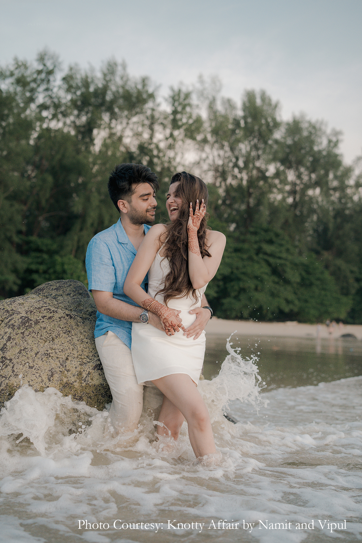 For their dream destination wedding, the couple embraced the tropical beauty and coastal charm of Thailand, hosting their festivities at the luxurious Avani+Khao Lak Resort. Milestones and Memories Events planned the celebrations, while the talented team of Knotty Affair by Namit and Vipul lent their expertise to capturing their special moments.