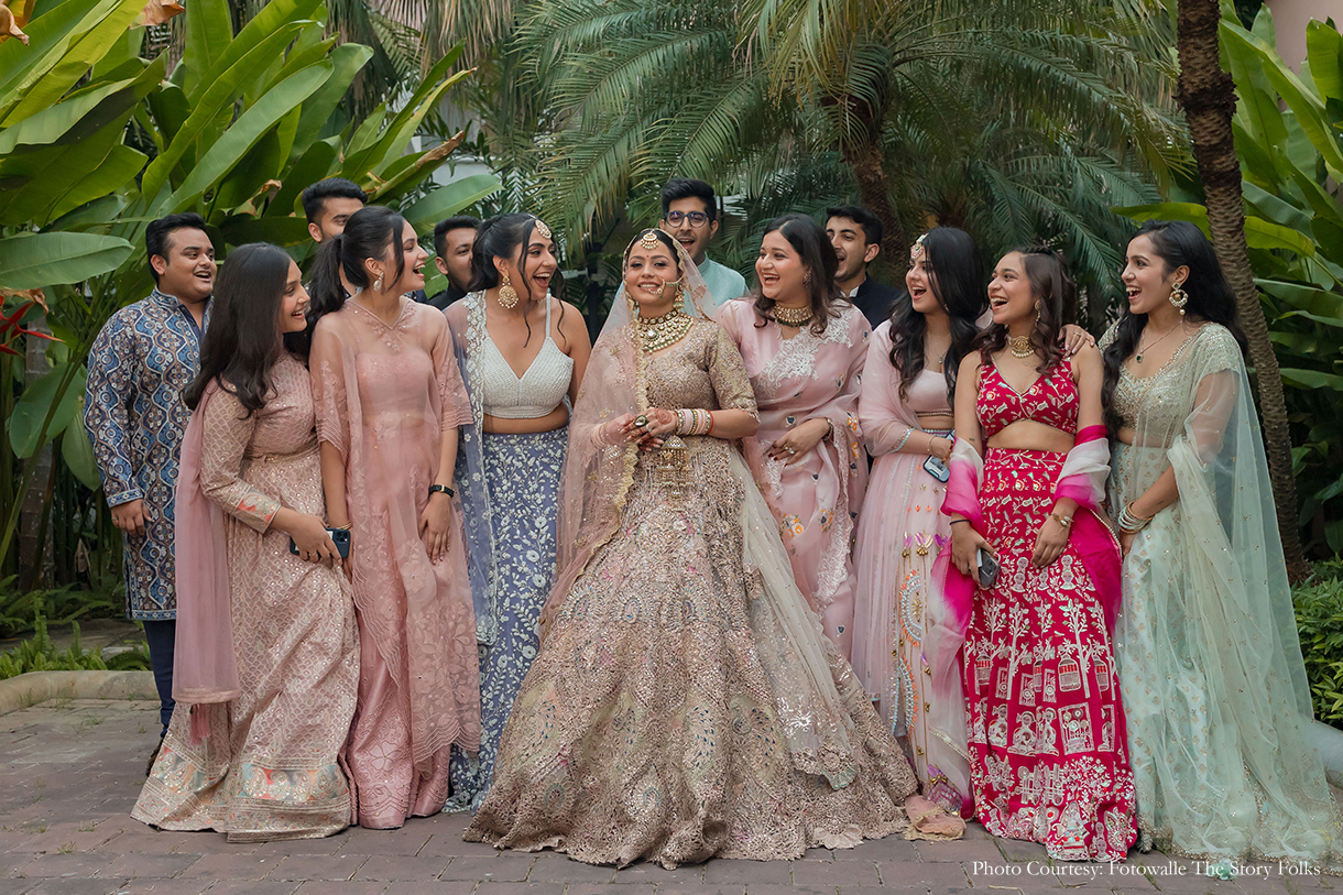 Bride’s Outfits: Petticoat Lane (Haldi), AMPM (Sundowner), Gaurav Gupta (Sangeet), Rimple and Harpreet Narula (Wedding), Rohit Gandhi + Rahul Khanna (Reception)
