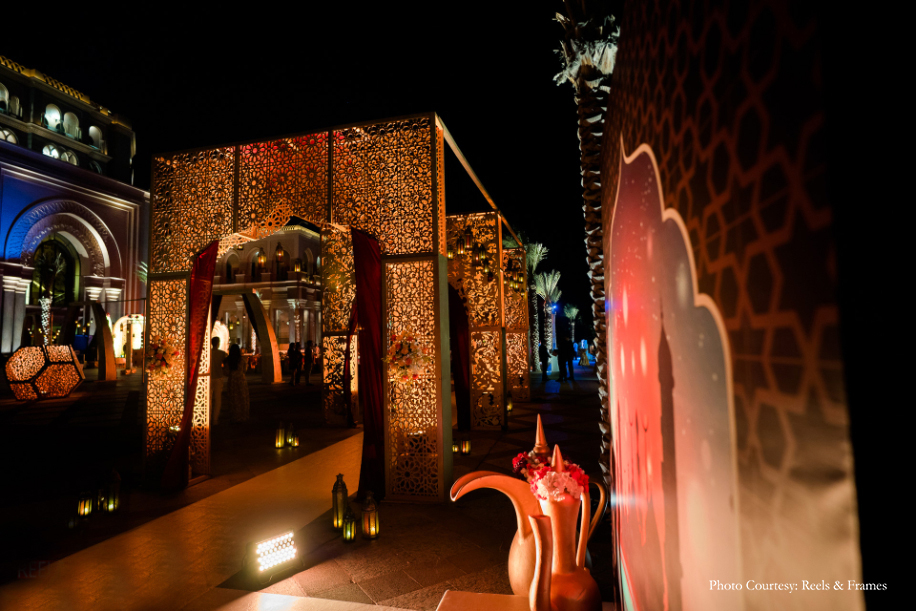 Décor: Kkings Events (Cocktail Party, Kankotri Lakhvanu, and Sangeet, Mehndi, Umrao Night, Brunch and Wedding) Swaaha WMC (Cocktail Party, Mehndi, Umrao Night, Brunch and Wedding), Dome Occasions ( Sangeet)