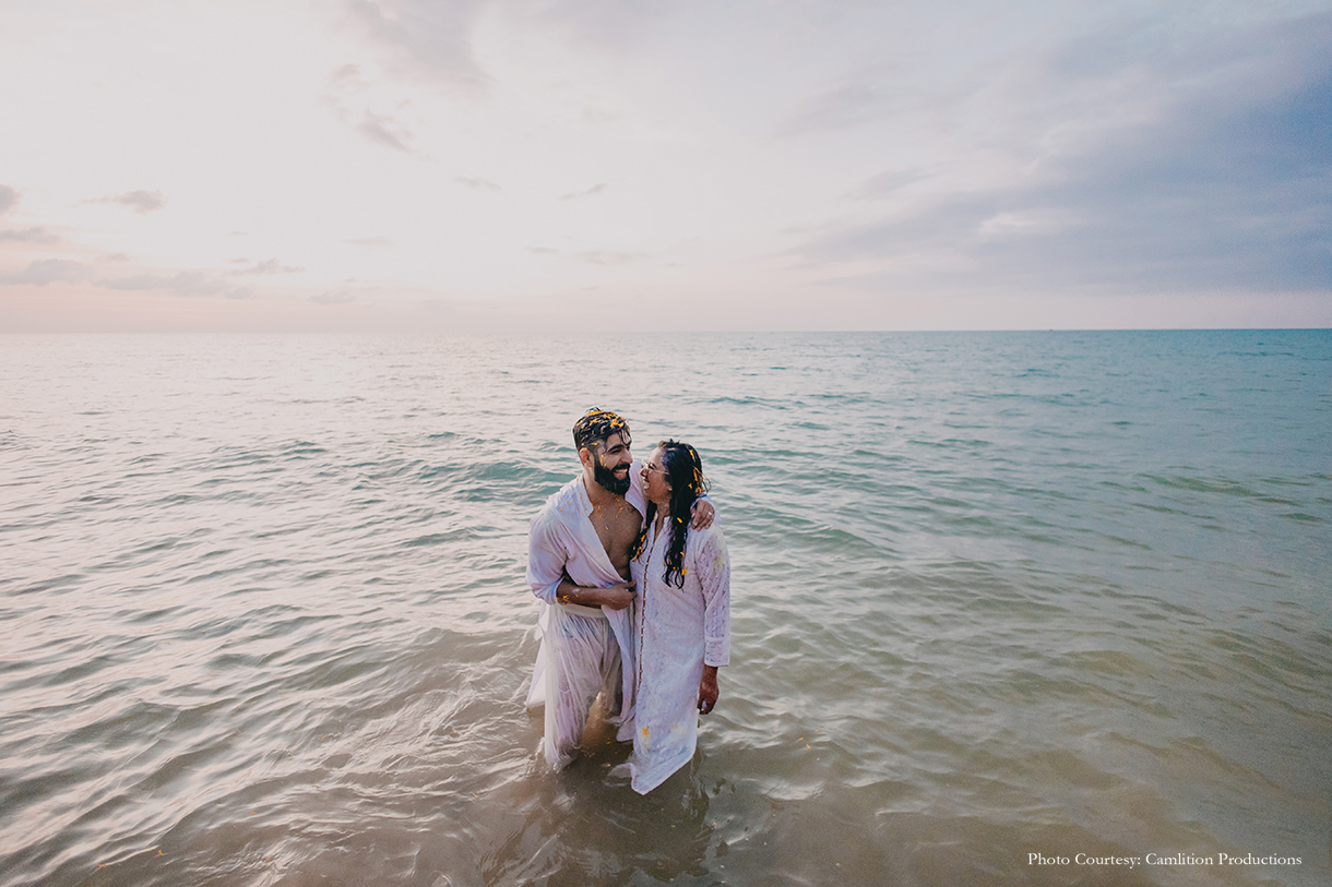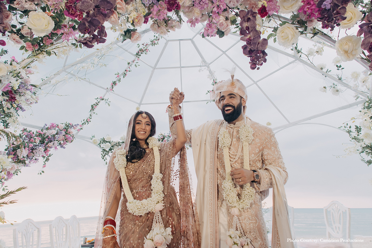 A hearty dose of glamour, endless beachside frolics and groovy dance sessions marked Kyraa Manchandani and Hardik Pahwa’s union in Thailand. This destination wedding was a contemporary celebration that paid an ode to spiritual traditions. Photographed by WeddingSutra Favorite – Camlition Productions, the pictures accurately captured the essence of their celebrations.