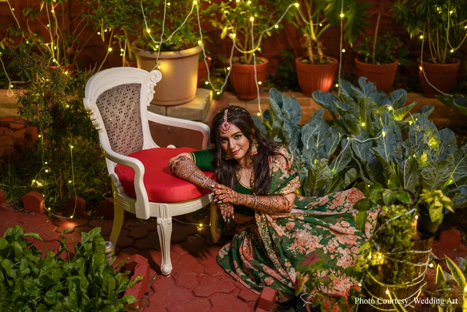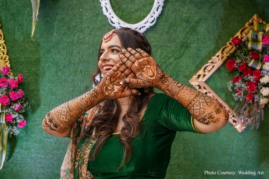 Decorated in hues of green and surrounded by fairy light, the mehndi was a dreamy one where Mahak quietly celebrated with her close family and friends. Donning a beautiful green lehenga, she was all smiles as she got henna patterned on her palms.