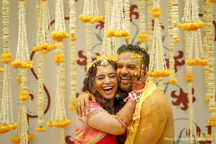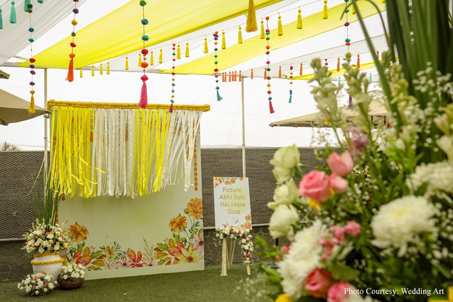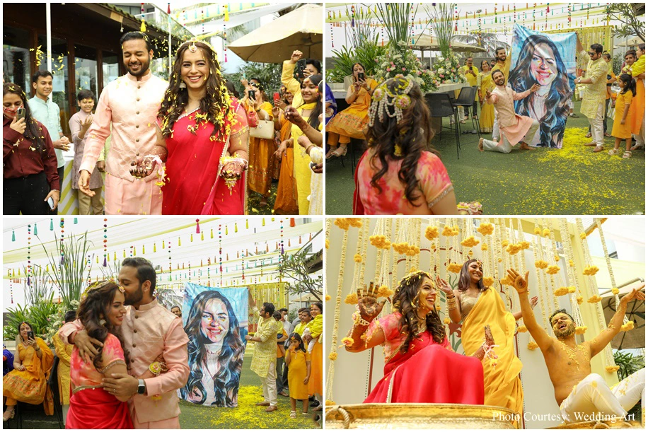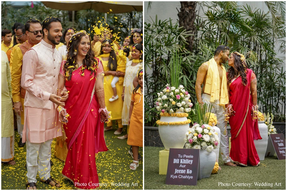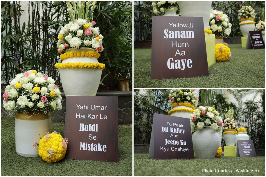 With rib-tickling Bollywood puns and an all-yellow decor, this couple’s outdoor haldi was a refreshing one!