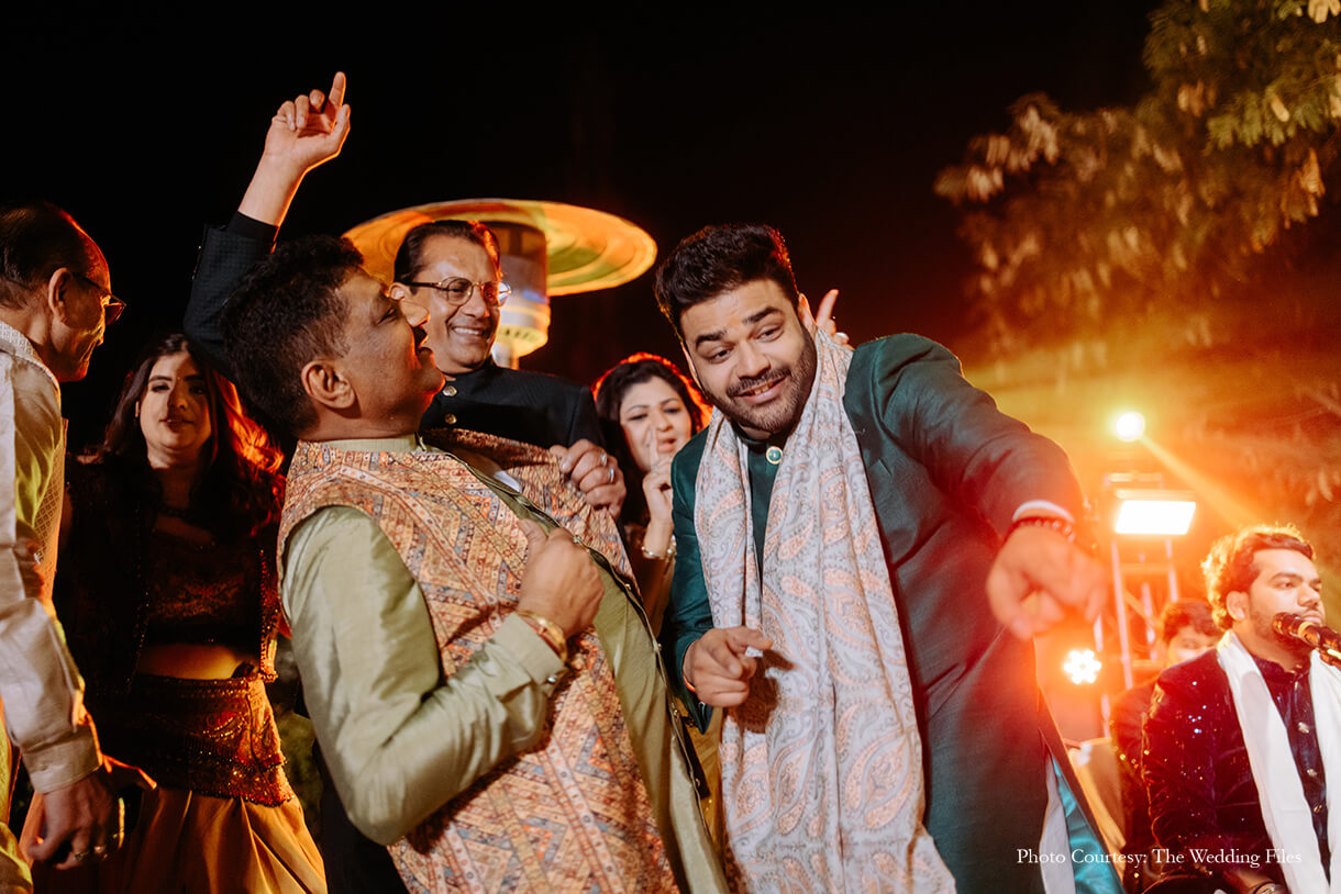 Soon after the wedding, the bride changed into a comfier attire and the reception party kicked off. Shweta shares, “For the reception, we had a perfume bar where guests could get their own customized fragrances. The highlight, however, was Mallika’s dance onstage with Sukhbir who serenaded her with his tunes while they both shook a leg!”