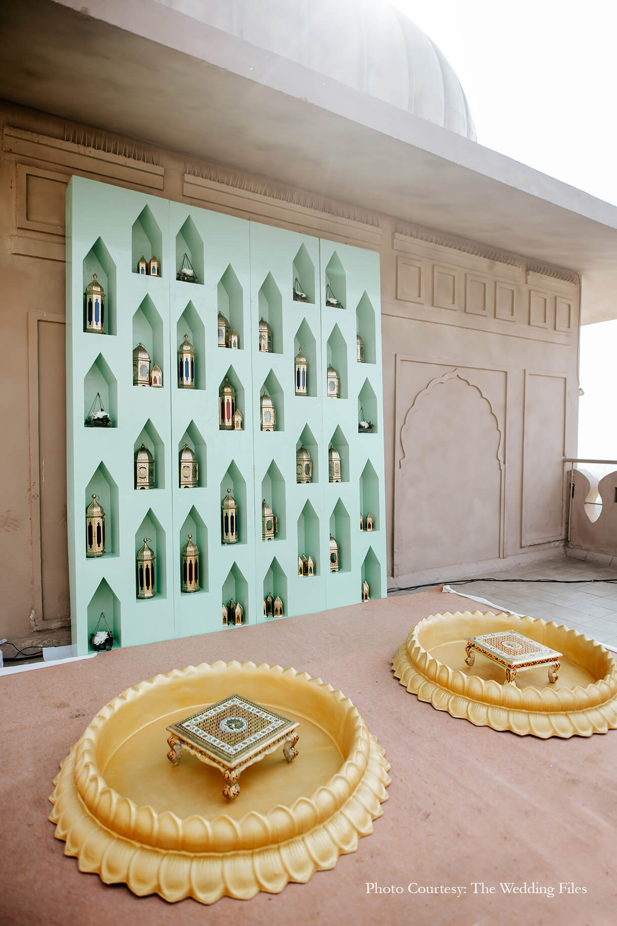 Yellow, who? This couple took a unique route for their haldi celebrations with an Arabic theme accentuated by pastel blue, white and gold hues.