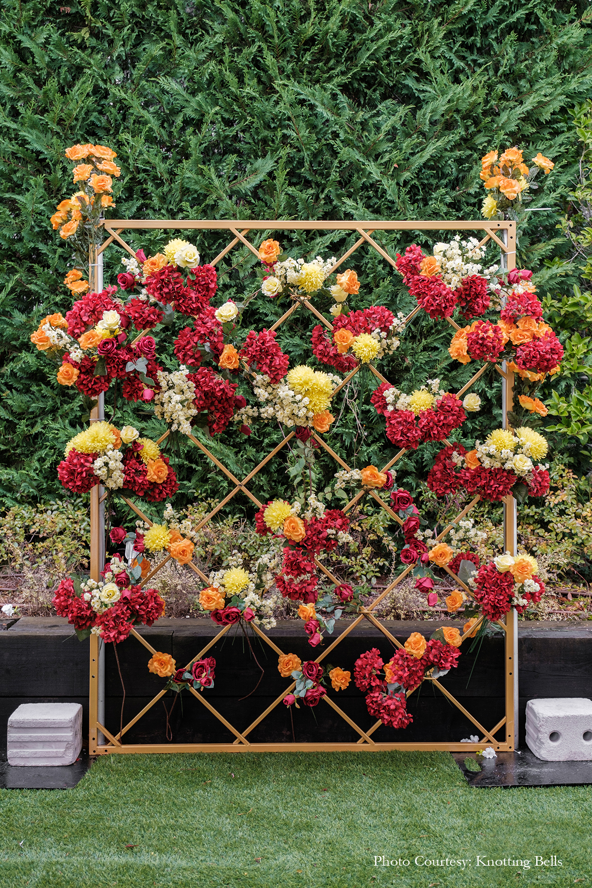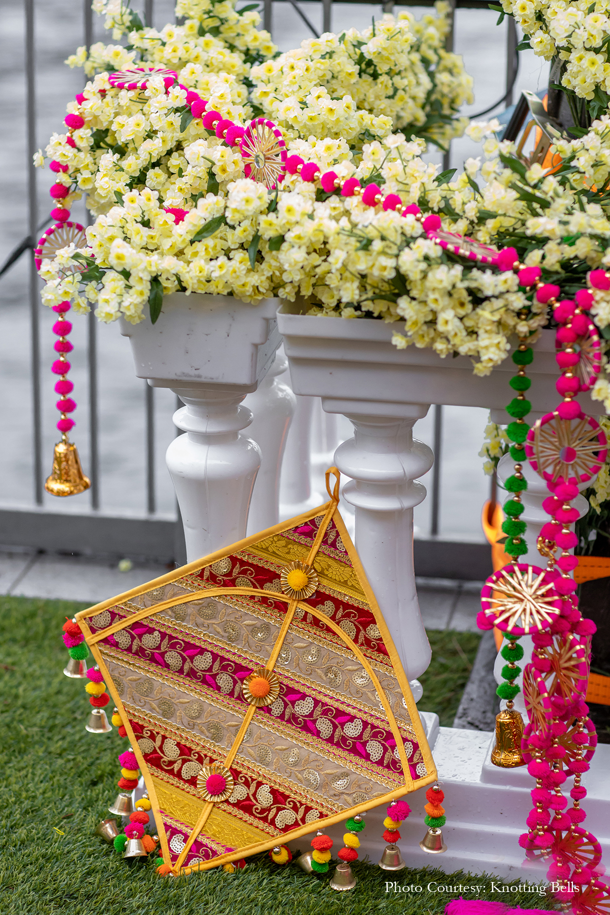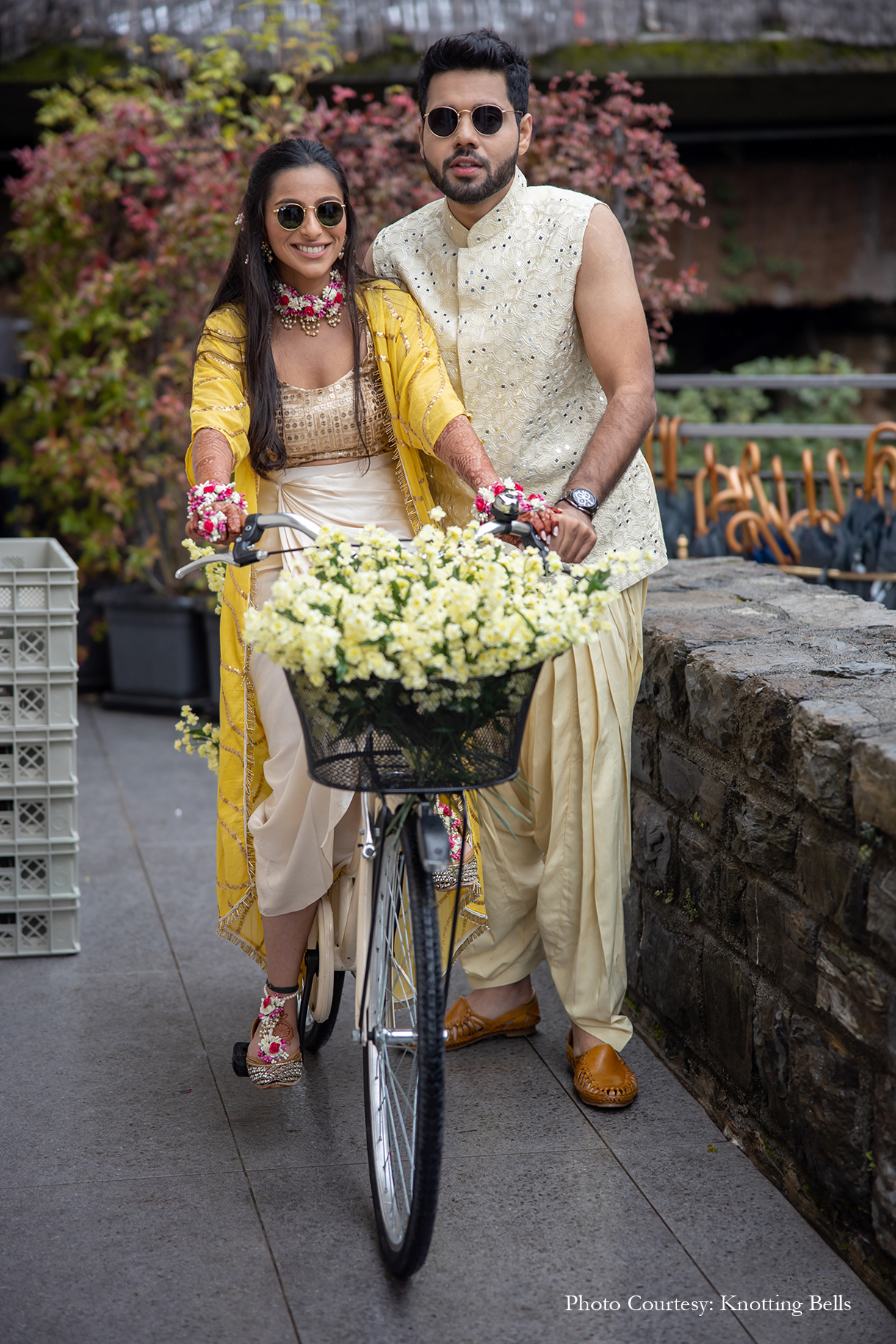 The Haldi ceremony, set on the picturesque deck of Villa Flori, was a burst of color and joy. Guests, dressed in shades of yellow, pink, and red, enjoyed an ambience filled with traditional rituals and playful elements like ‘polaroid’ stations and a wishing board.
