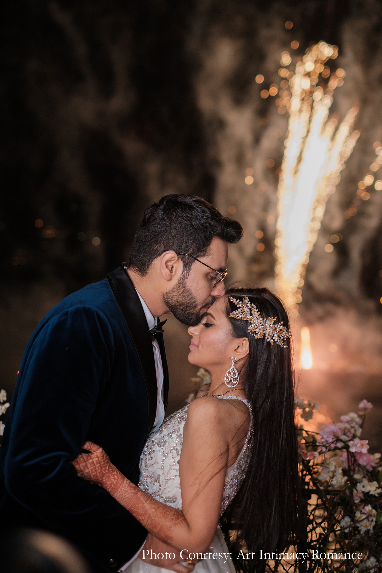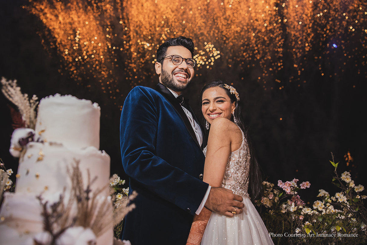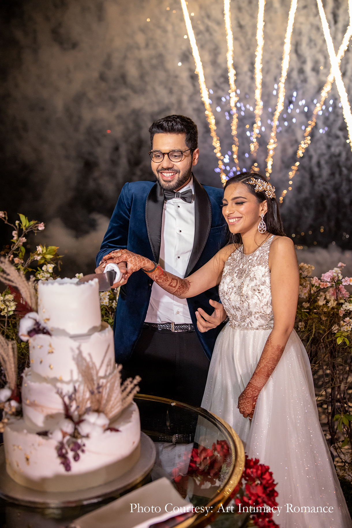 “The reception was a grand culmination of this beautiful journey. The couple’s elegant entrance, the three-tier cake cutting, and the surprise fireworks display mesmerised all the guests. The DJ’s beats kept the energy high, ensuring the night ended on a vibrant note”, shares Monil.