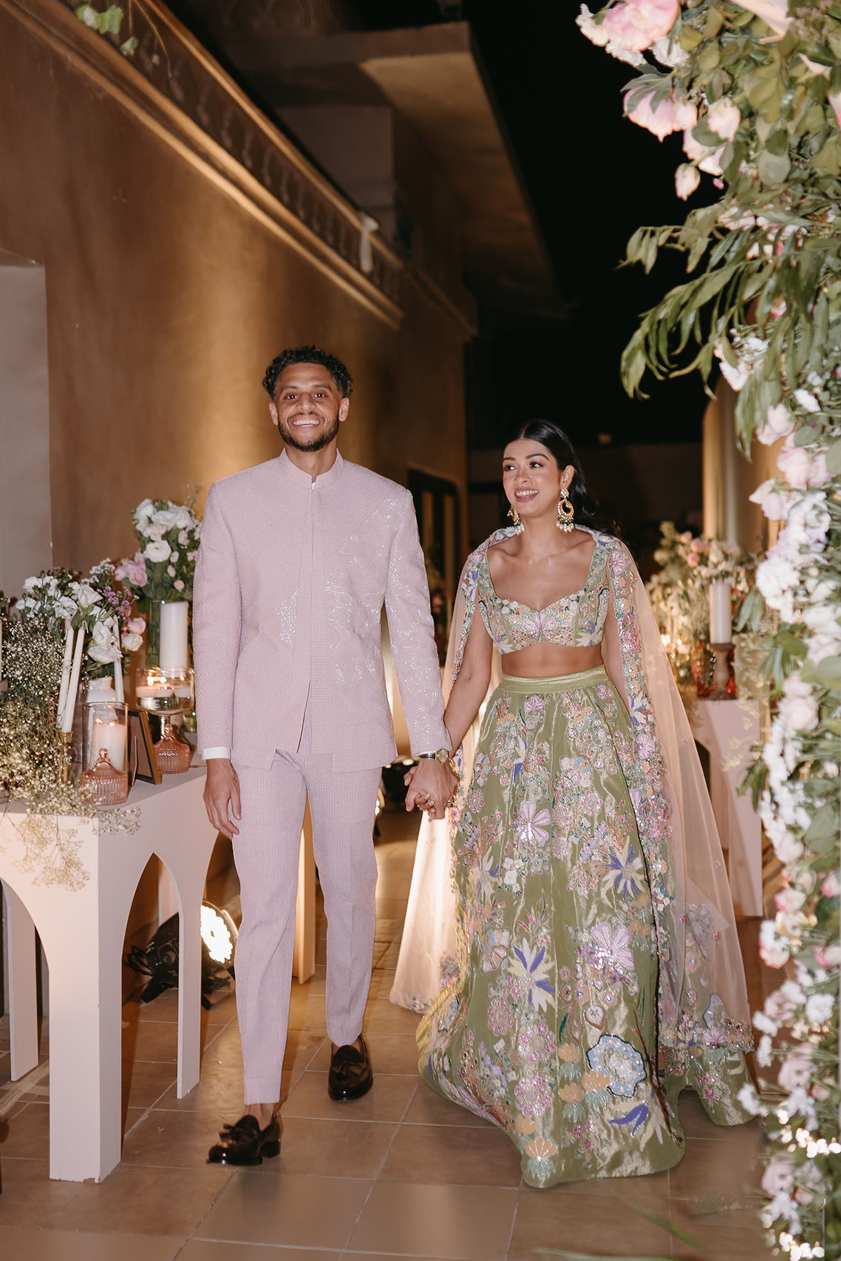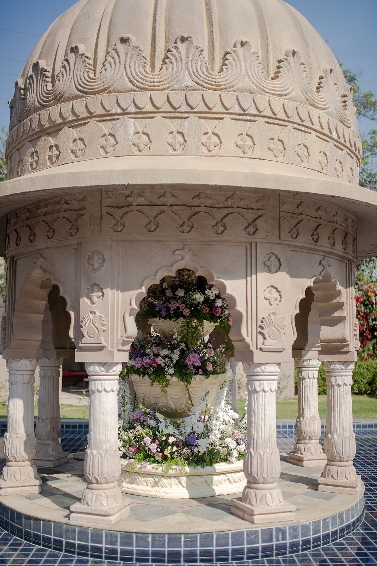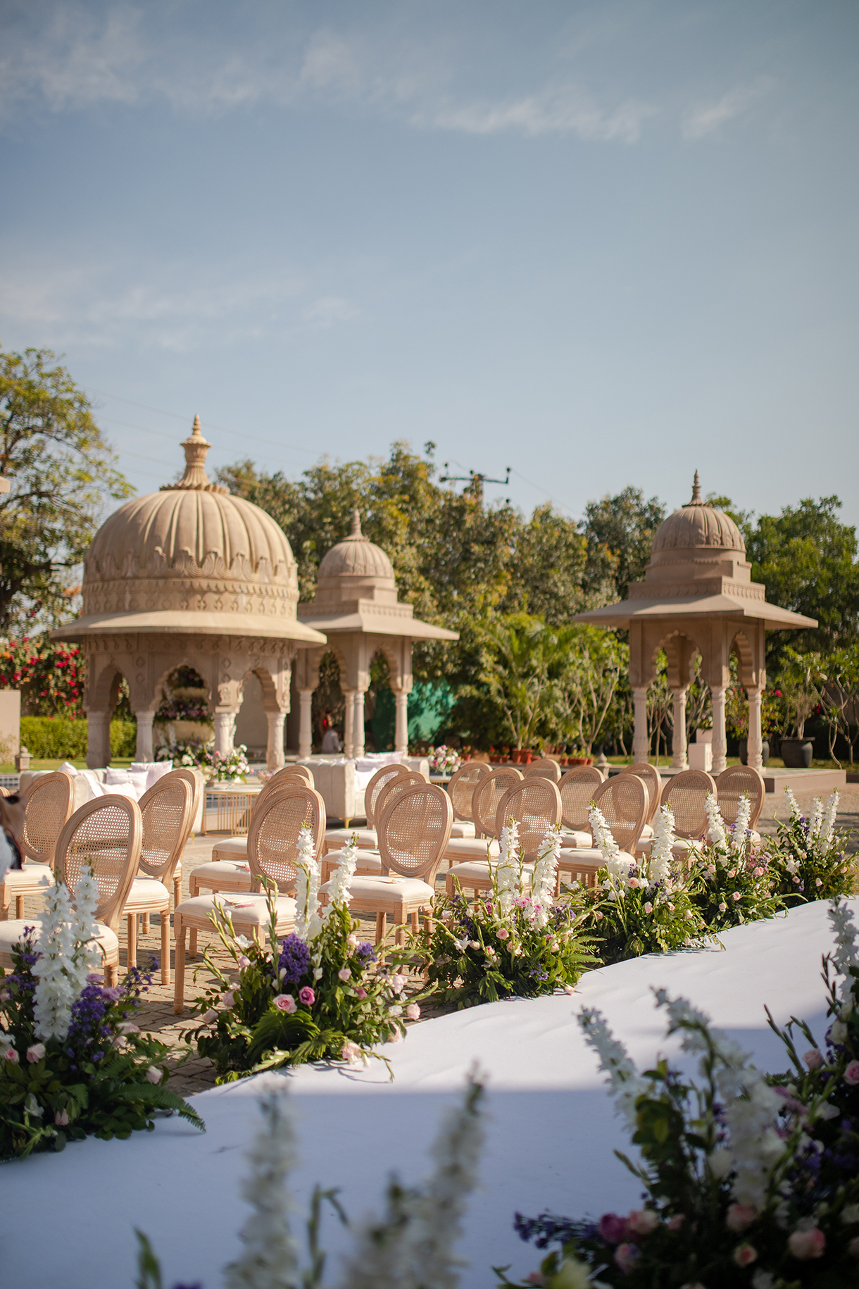Selecting the regal allure of the Pink City as a backdrop to their union of love, the couple hosted their dream destination wedding at Fairmont Jaipur. With a vision of underrated luxury, they turned to the creative genius of Nazara Decor to breathe life into their ideas. Amalgamating the spirit of their cultures with ethereal aesthetics, they crafted a celebration that spelled pure class.