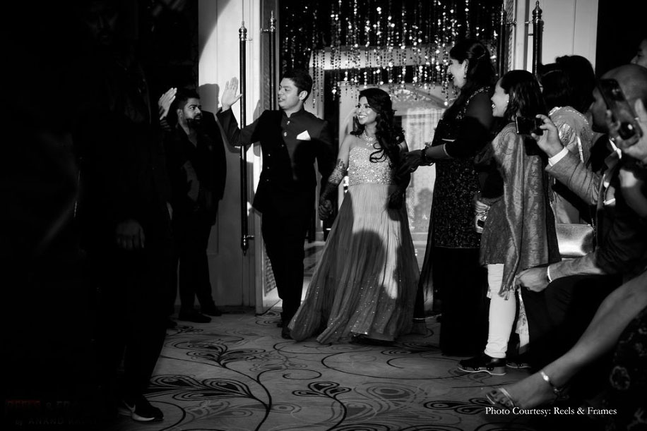 “I wanted the sangeet to have a mirror theme, and that is all I mentioned to ESL. They collaborated with the wedding decorators and gave us amazing decor that matched the theme perfectly. Gulmohar Gardens as a venue is stunning and to top it off, Shyam and I felt like royalty thanks to the grand entry that ESL planned for us. There were fireworks and sparklers all around us with the ‘Mastani’ girls dancing to the tunes. There were various surprise acts throughout the evening for guests followed by a family sangeet, where all our loved ones put in a lot of effort to practise the choreography and amaze everyone.”