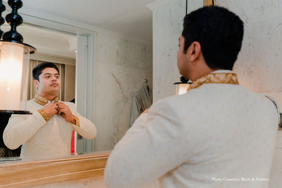 “I moved to Singapore for work and decided to explore the dating app world. I signed up for this app called ‘Coffee Meets Bagel,’ and that is where I bumped into Shyam. We met in June last year and went on a couple of dates over four months. I wasn’t very interested in him initially because I thought he only spoke about himself and wasn’t interested in learning about me. But things just worked out for us, and we finally started dating in November last year. Our parents met in April this year, we got engaged in May and had our Telugu wedding in Hyderabad at the end of August this year. Our Registry took place in Singapore in early September, and finally our North Indian Wedding in Jaipur followed this November.”