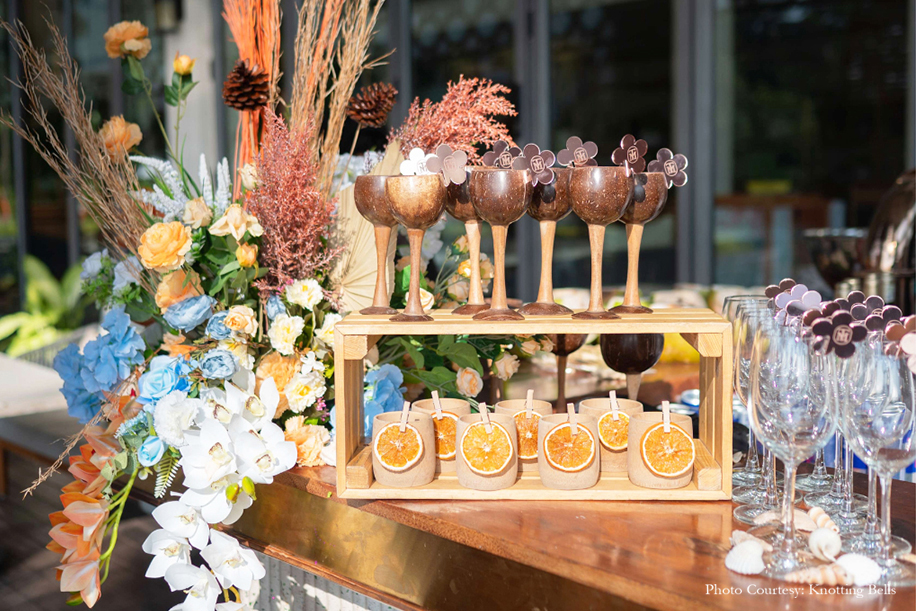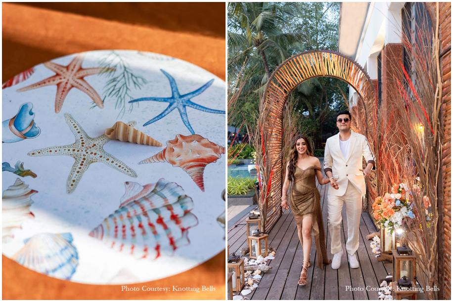 This couple’s sundowner party by the Goan shore took inspiration from the beach with its aquatic theme.