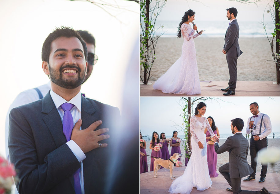 Since I was a little girl, I had always dreamt of walking down the aisle in a white gown and we made it come true with our sunset beach engagement. My white gown was flown in from the US and was a surprise gift from my sisters. All the bridesmaid’s dresses were designed by Eye Candy from Kemps Corner and perfectly coordinated with the groomsmen bow ties. I trained Panty to get the engagement rings, just the way I had trained him in our ‘Save the Date’ video