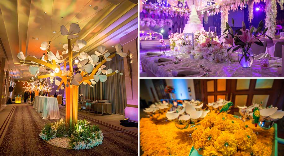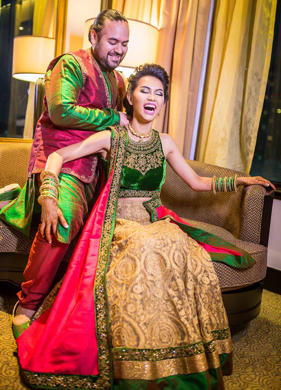 I’d like to give credit to our wedding planners, Khun Nipu and Khun Kripa, for the wonderful decor and artwork they did for all the functions. The mehndi and ring ceremony was held at the Sheraton Grande Sukhumvit Hotel, and the theme was ‘humtum and hungama’ which was supposed to be fun and colourful and they put their hearts into it. Every element in the décor was well designed, the dance floor and stage beautifully made.