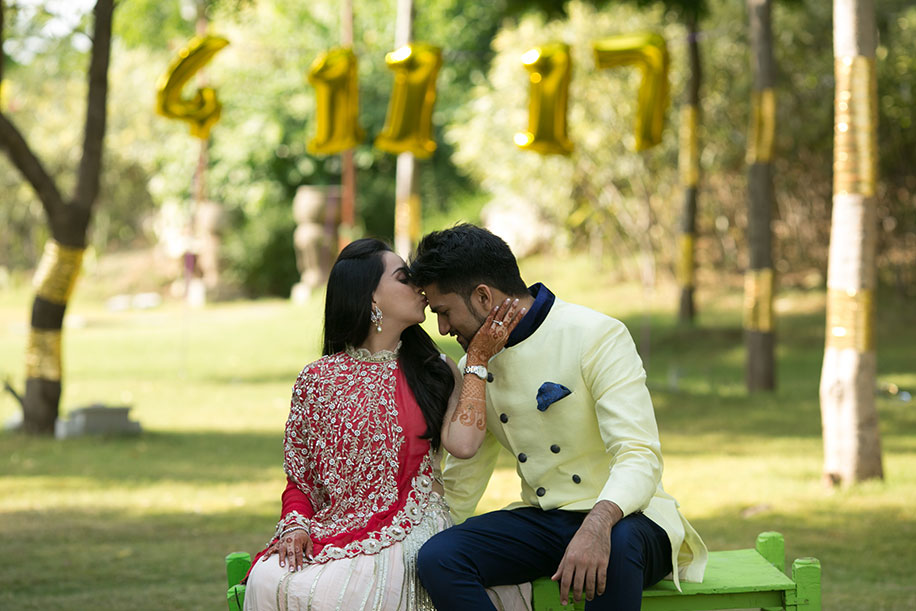 “Both of us live in Dubai, UAE, and met at a common friend’s birthday dinner. The first time we met I thought Puneet was strange. I had worked extra hours at the office that evening so I showed up a bit late to the party. After meeting everyone I knew and getting introduced to few new people, I sat at the end of the table. Next thing I saw was Puneet getting up, leaving his original seat and moving three seats down just to sit opposite me so that he could start a conversation. That is how it all began.”