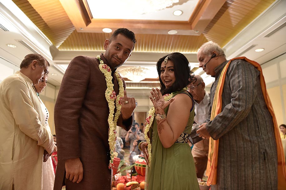 My ‘Misri + Mojitos’ outfit is an Arpita Mehra creation from Aza Fashions, while my wedding and reception outfits were from smaller boutiques around the area, like UM Delhi and Roop Vatika. Most of my jewellery, including our engagement rings, wedding necklace and other sets were from family jewellers in Hong Kong and Dubai.