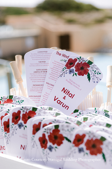 Keeping in mind the colorful nature of Indian weddings, the duo decided to introduce the royal red color in their choice of color palette to contrast against the pristine blue backdrop. Maintaining their modern style and choices, they stuck to being minimal and yet stayed classy using pops of color wherever they could to accentuate the splendor of Indian weddings.