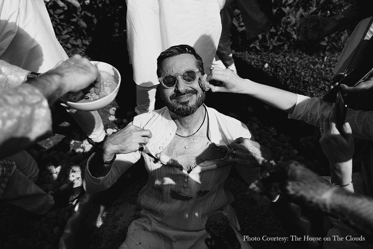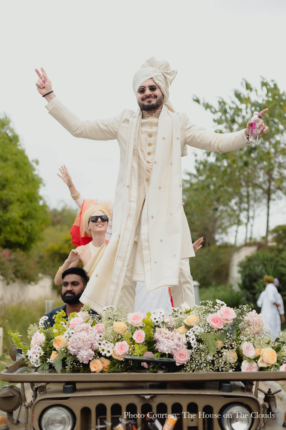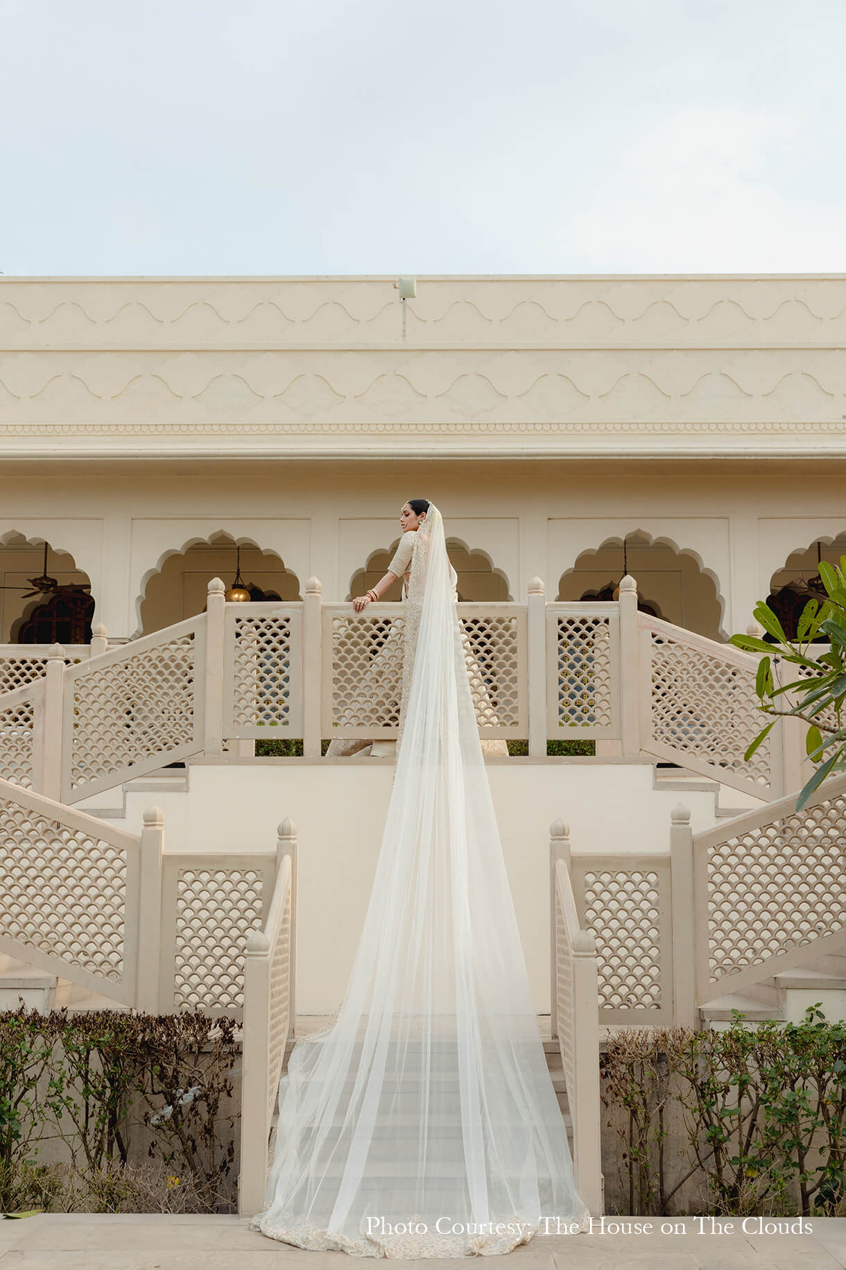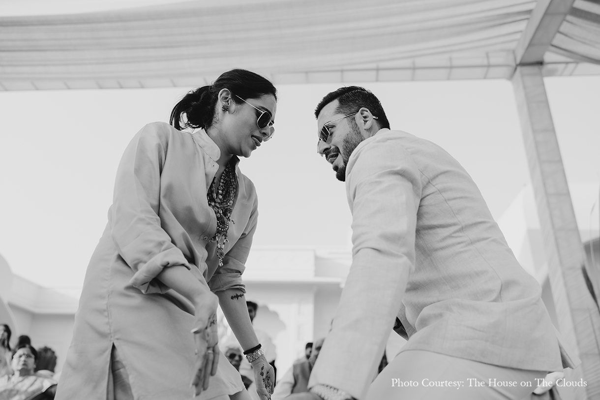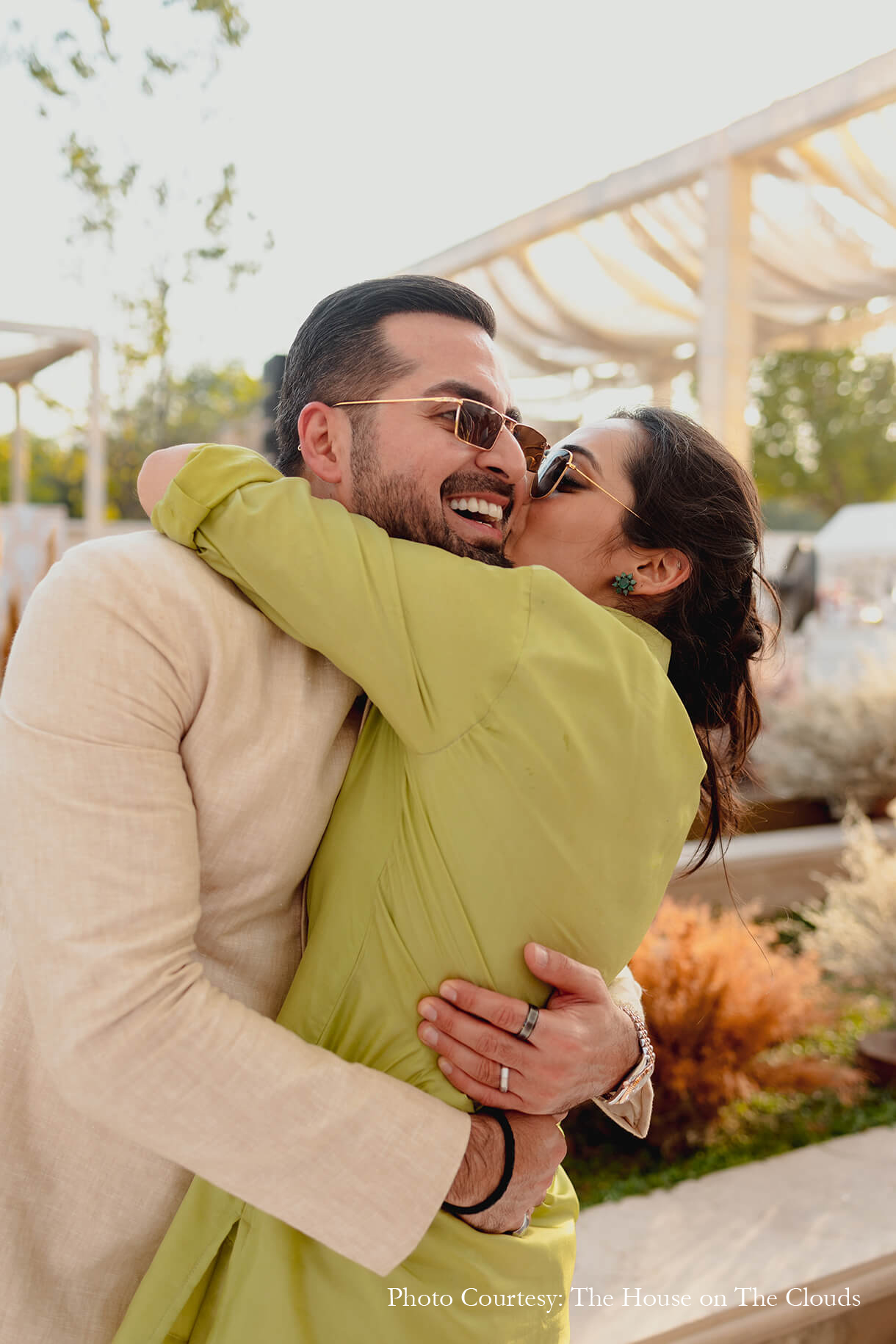 Being a bride working in the creative industry, Palak had a strong aesthetic vision for her destination wedding, with a mood board that was minimal, soulful, and elegant. For their intimate guest list and quaint, close-knit festivities, they chose the idyllic venue of The Oberoi Sukhvilas Spa Resort. The team of The Wedding Square designed and executed everything from the decor to the smallest personalized details of the celebration, while Krayonz Entertainment spearheaded the planning of the entire event, bringing the couple’s vision to life. Every moment of the 2-day festivities was immortalized in breathtaking frames by the celebrated team of The House on the Clouds.