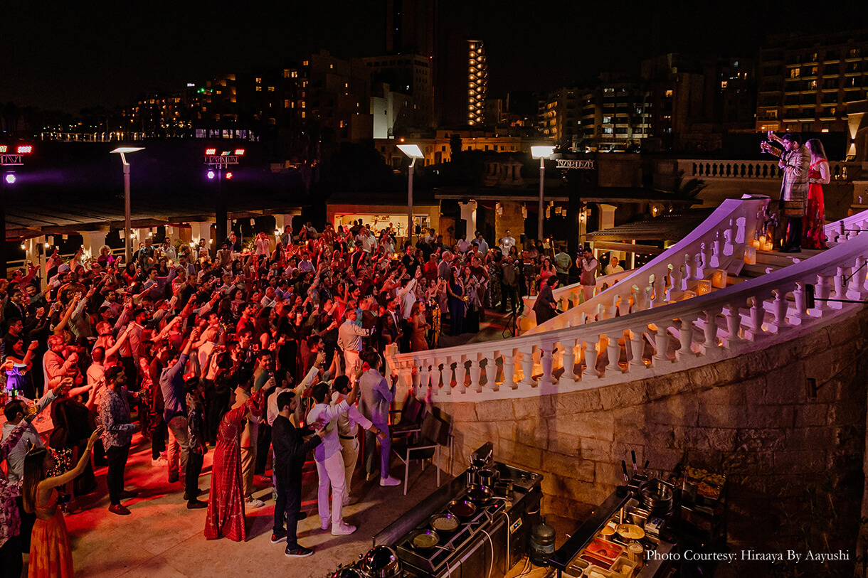 For their fusion Hindu and Spanish wedding, the couple chose the scenic landscape of Malta to host a destination wedding. The couple shares, “The wedding had the framework of an Indian Wedding – Haldi, Mehendi, Sangeet and a traditional Indian Wedding. However, we also had a complete Spanish Wedding ceremony at the Saluting Battery (an artillery battery heritage site) with vows in Spanish (translated into English) and traditional Spanish food! In addition, we had a welcome dinner with a Ghanaian theme to represent our strong connections to Ghana. This included Afrobeats music, fireshows, and Ghanaian-based prints called Kente.”
