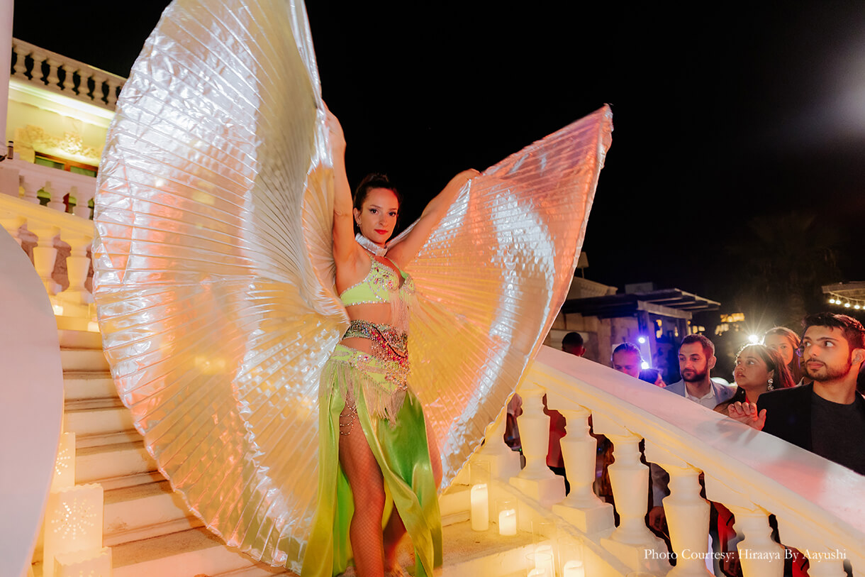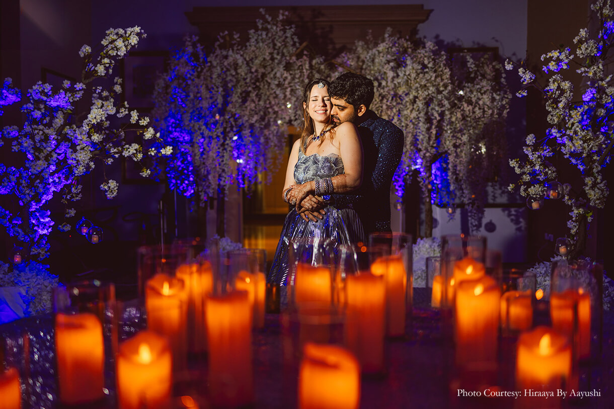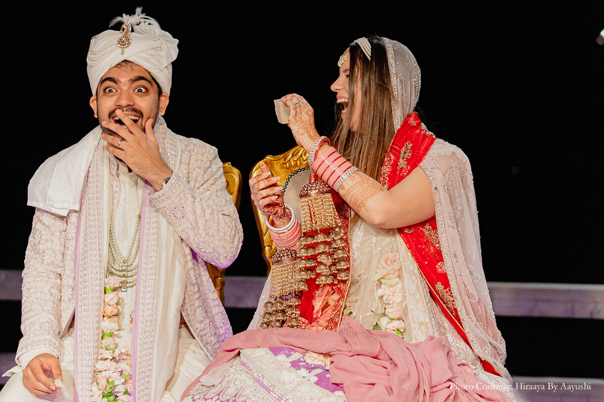 On the photography front, Hiraaya by Aayushi captured the couple at their stylish best. The couple shares, “Right from our initial call, it felt like the right vibe with Hiraay by Aayushi. We took some amazing photos with heavenly backgrounds, and the team took amazing pictures of our guests. The team was more excited about the shots than we were and that’s when we knew we had the perfect team capturing these most special moments. What we loved the most about the team was that they were not intrusive. They clicked pictures from spots that would cause the least disturbance. They are beyond committed to their work, and they are extremely good at it. By the end of the week, we’d gained a few more friends!”