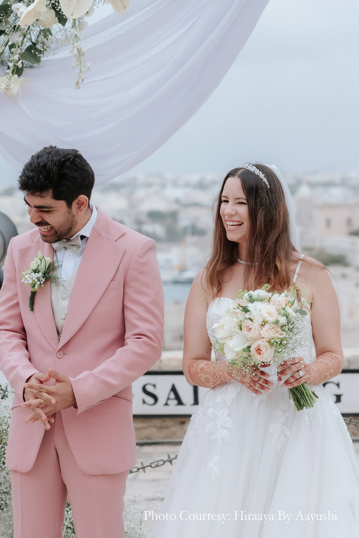 Patricia Arribas and Rishabh Dhawan’s destination wedding in Malta was a heady mix of Spanish and Indian cultures. Paying homage to their roots while having loads of fun, the couple’s destination wedding was planned and designed by WeddingSutra Favorite – The Serendipity Co. And, photographing the couple’s adorable moments was WeddingSutra Favorite – Hiraaya by Aayushi who used their expertise to capture some truly memorable shots.