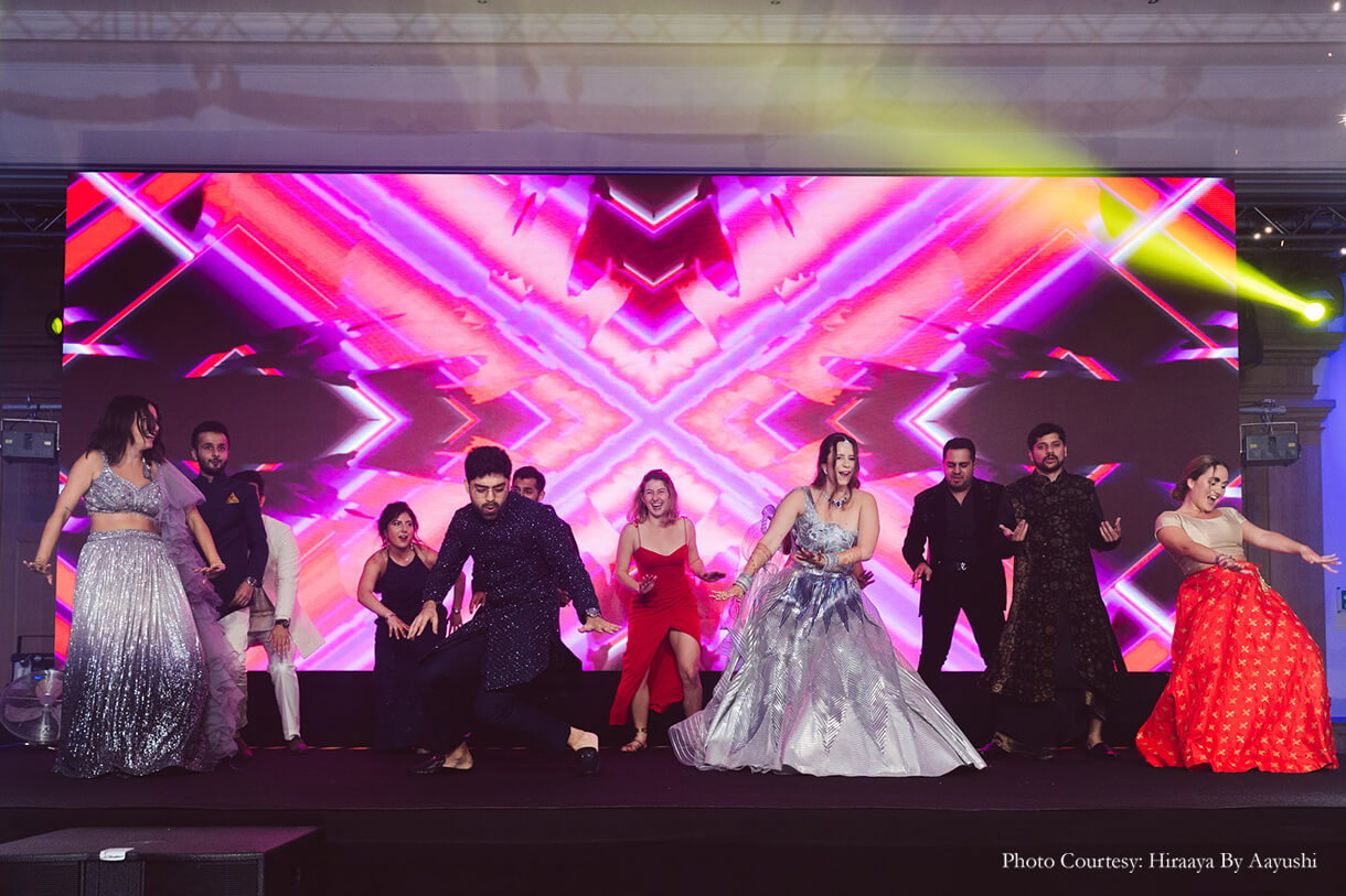 Rishabh shares, “This was at the Ballroom, Westin Dragonara. Patricia’s friends and family were introduced to this event with the dance practices and they were able to put on a show… the Sangeet performance was so wholesome with all our closest friends and cousins dancing to the songs we love the most – Bollywood, Reggaeton, Afrobeats and English. This was followed by a visual hologram show which went on for about two hours and then everyone kept going until the sun came out. We also had a tequila bar at this event given it’s our favorite spirit!”