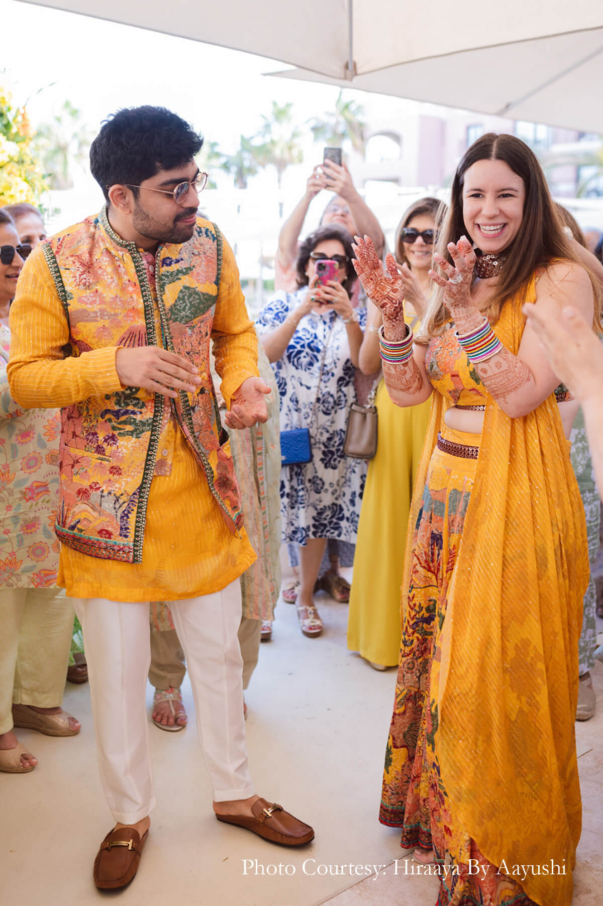Fusing Spanish and Indian wedding rituals seamlessly, this couple’s destination wedding was a vibrant celebration of love.