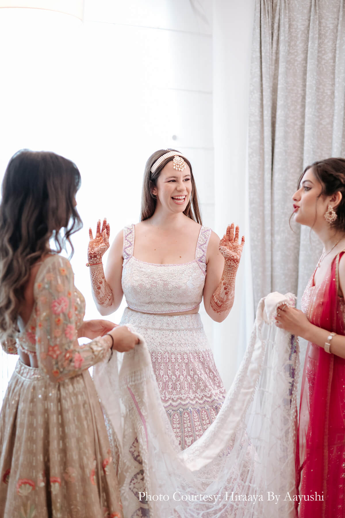 Rhea Dewan from The Serendipity Co. shares, “The three-day wedding festivities commenced with a heartfelt welcome lunch and mehendi ceremony for the guests. The ambience was set with delectable cuisines and exquisite cocktails which everyone enjoyed immensely.” Rishabh adds, “It was a casual welcome lunch served at The Terrace Restaurant within the hotel. His was a free flow of guests who were arriving from the airport. Along with the welcome lunch was the Mehendi ceremony where Patricia did her Mehendi along with 25-30 other guests of which many were non-Indians who applied Mehendi for the first time!”
