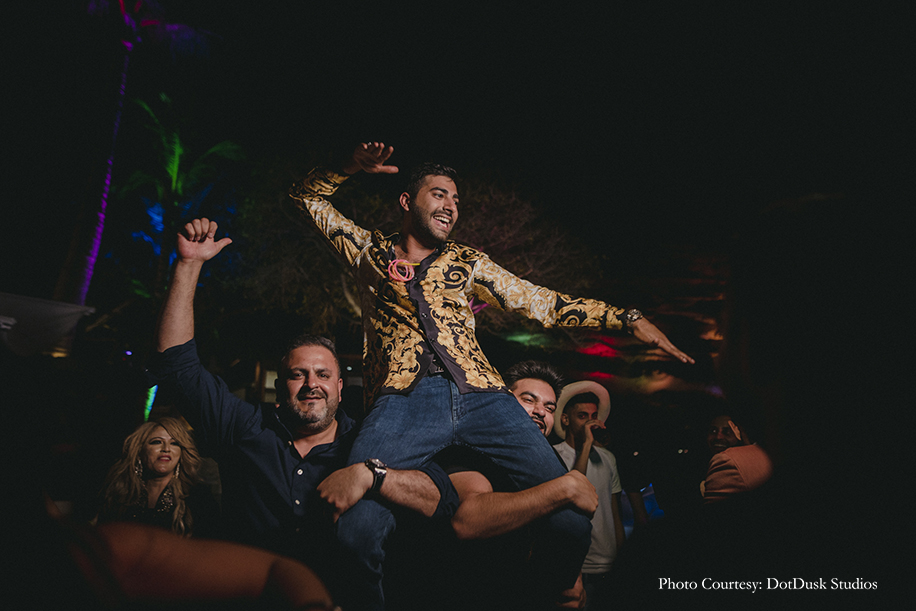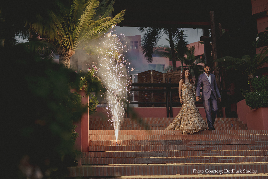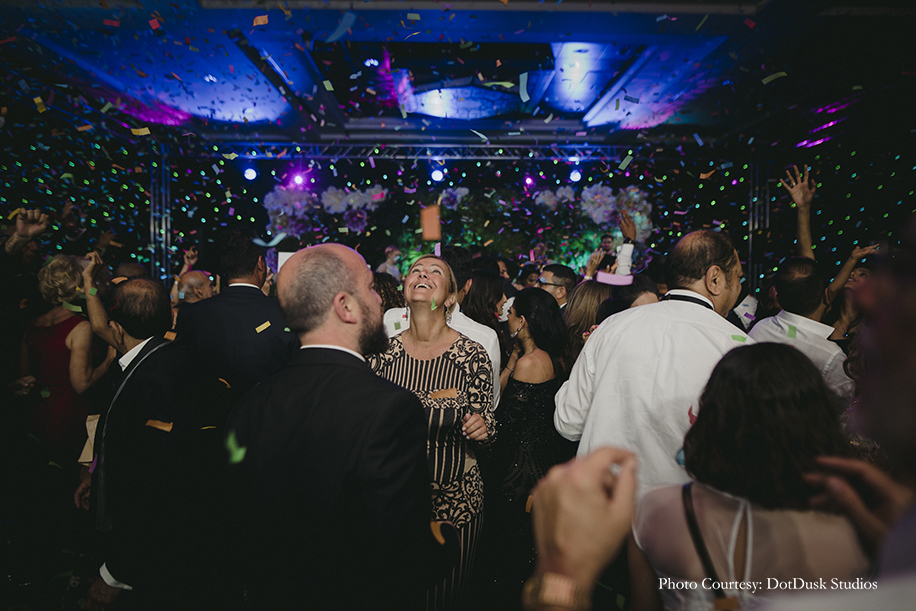 The gorgeous couple made their grand entrance to the beats of the song ‘Taki Taki’ amidst an impressive display of fireworks. After the welcome fiesta, the guests were taken down to an exclusive beach, where DJ Chuso got the party pumping. Armed with glow-in-the-dark and neon props, the night was wild.