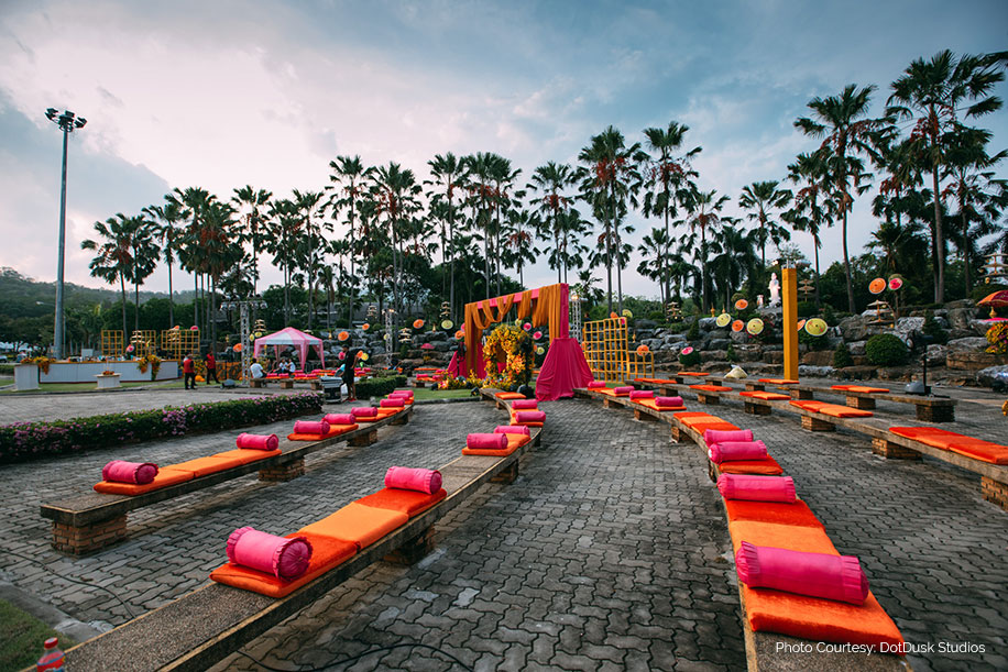 “We have had a lot of family weddings at Fiji, which is our home country, so that was out of the question for us as a wedding destination. One day I just woke up and decided we could get married in Thailand. It would also mean a holiday for our guests! Thailand offers great food, beautiful landscapes, and an amazing culture, so it would be a different experience for all of us. We wanted an authentic Thai vibe for our wedding, and after researching options, we came across The Dhara Dhevi Chiang Mai. We also researched about Chiang Mai to find out more about its attractions and traditions. We had three functions at The Dhara Dhevi itself because the resort has so much to offer. Our sangeet was held at a government-owned park which was stunning. Our wedding planning team helped us with the sangeet venue logistics.”